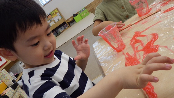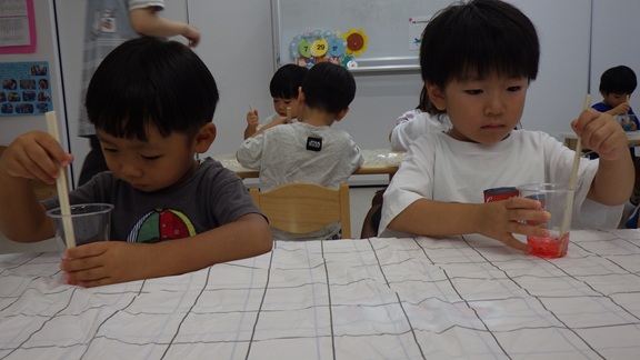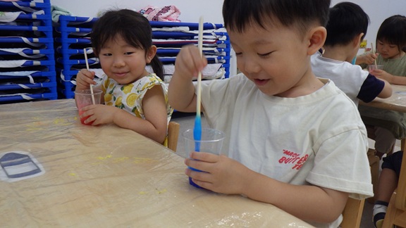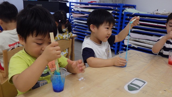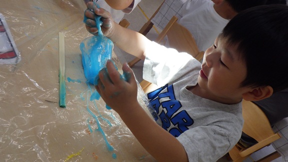 同じ机のお友だちとスライムを混ぜ、混色遊びも楽しみましたよ♪