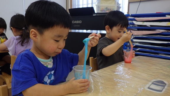 にじ組(3歳児)でスライム遊びを行いました!