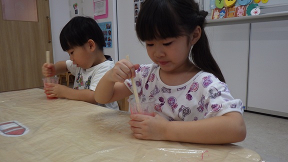 今回は、赤色・青色・黄色の中から好きな色を選び、色を付けました。