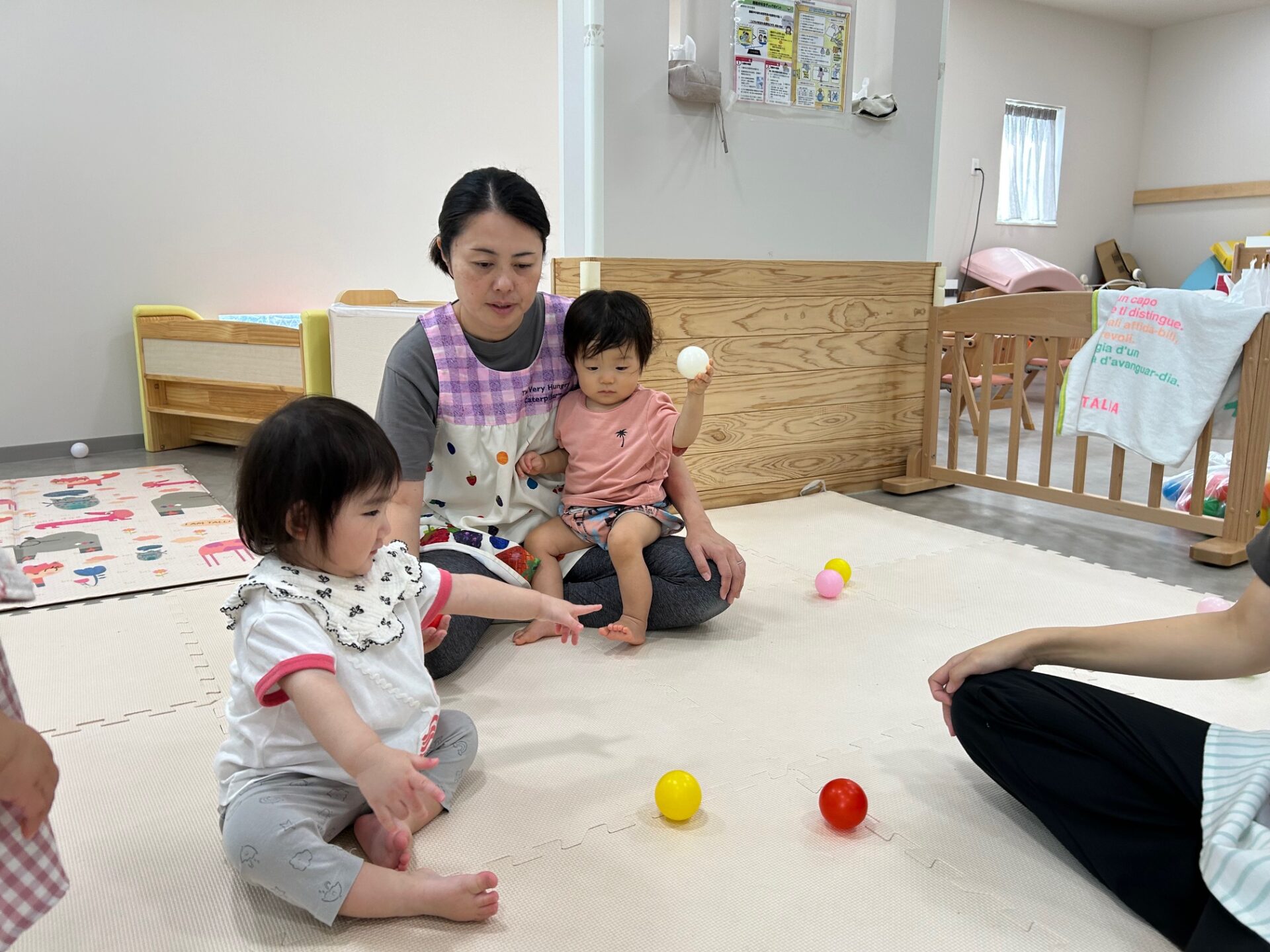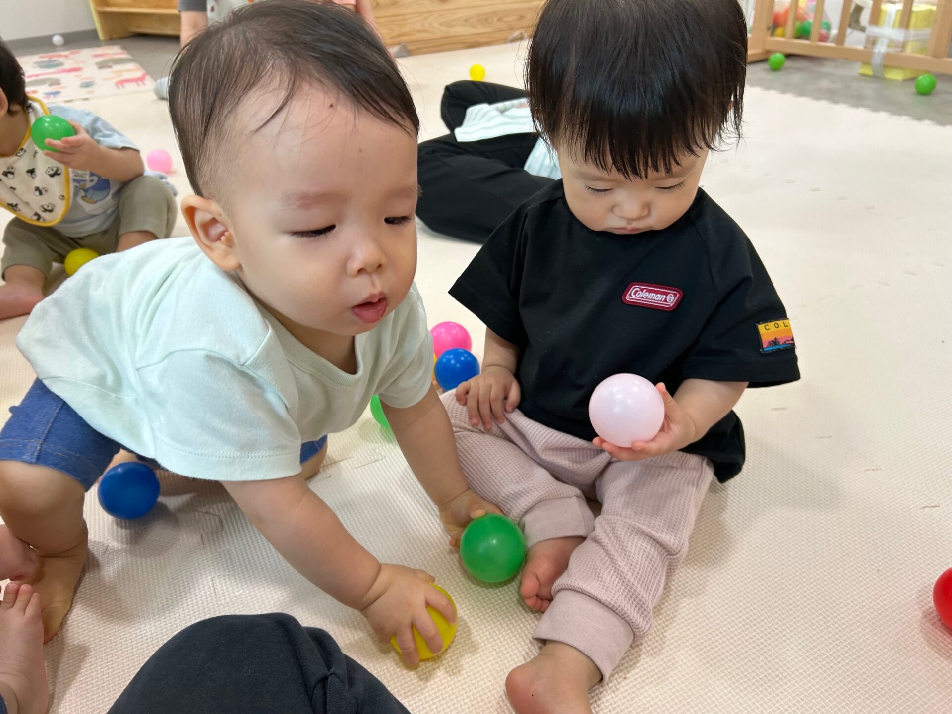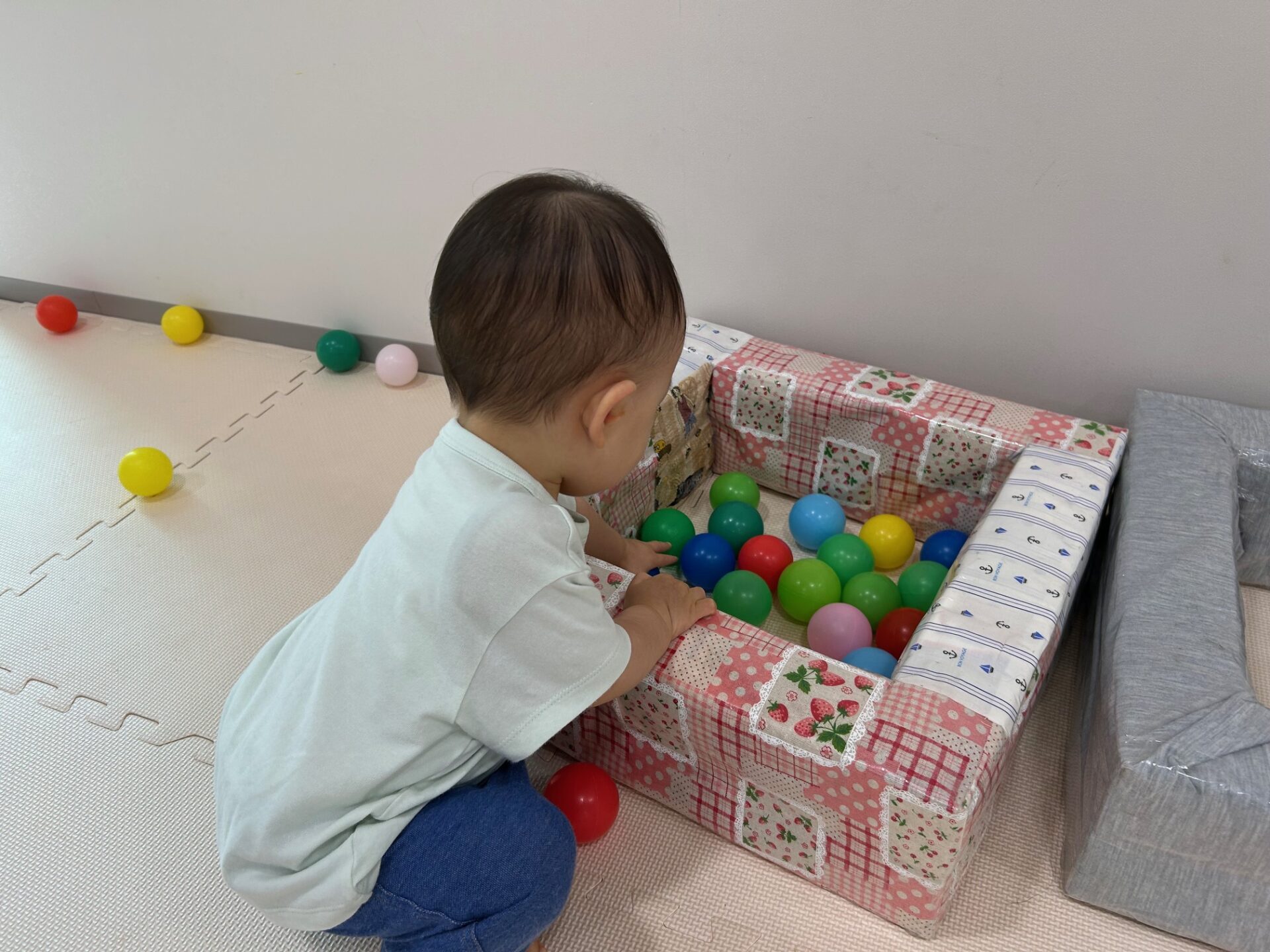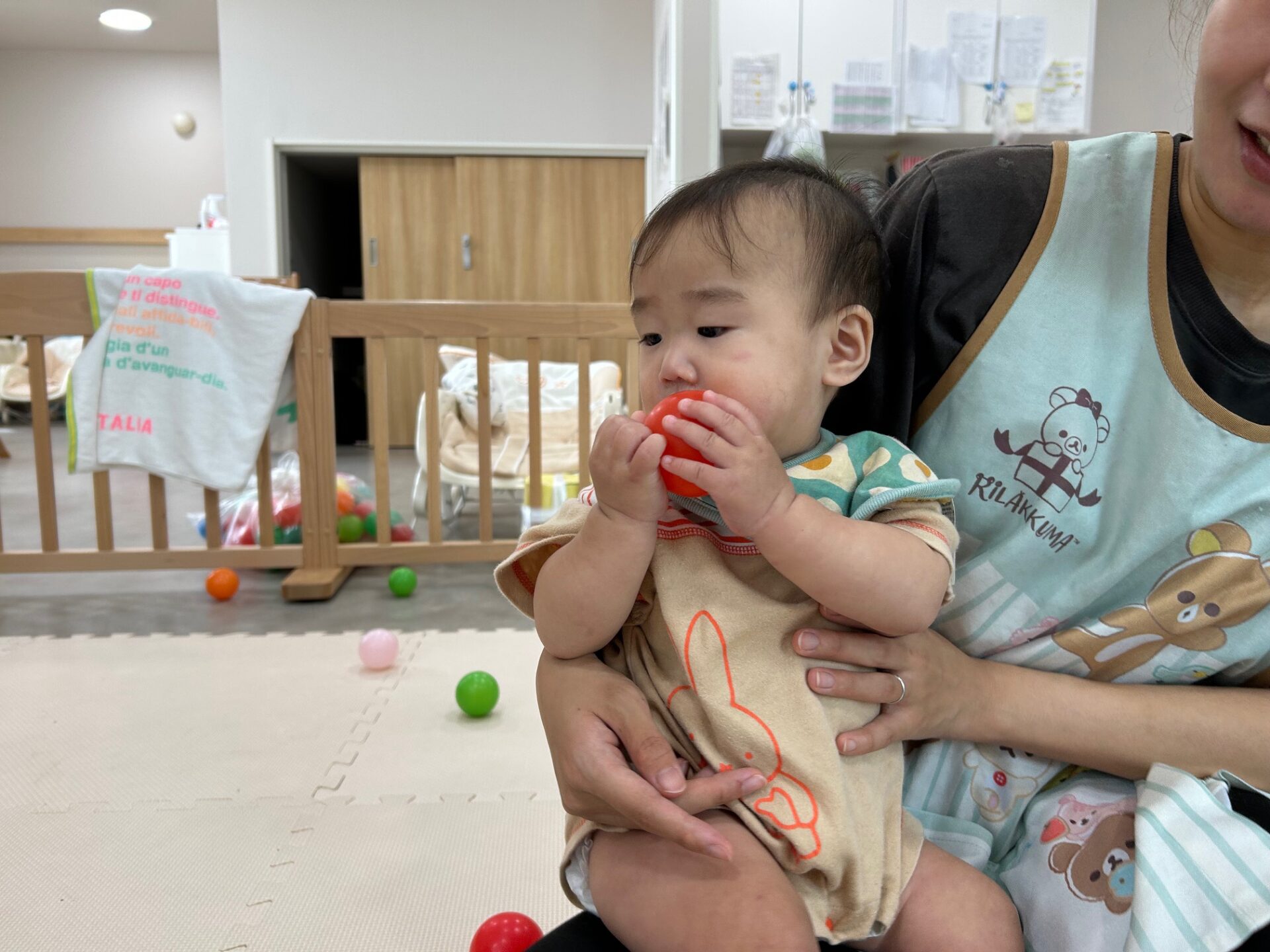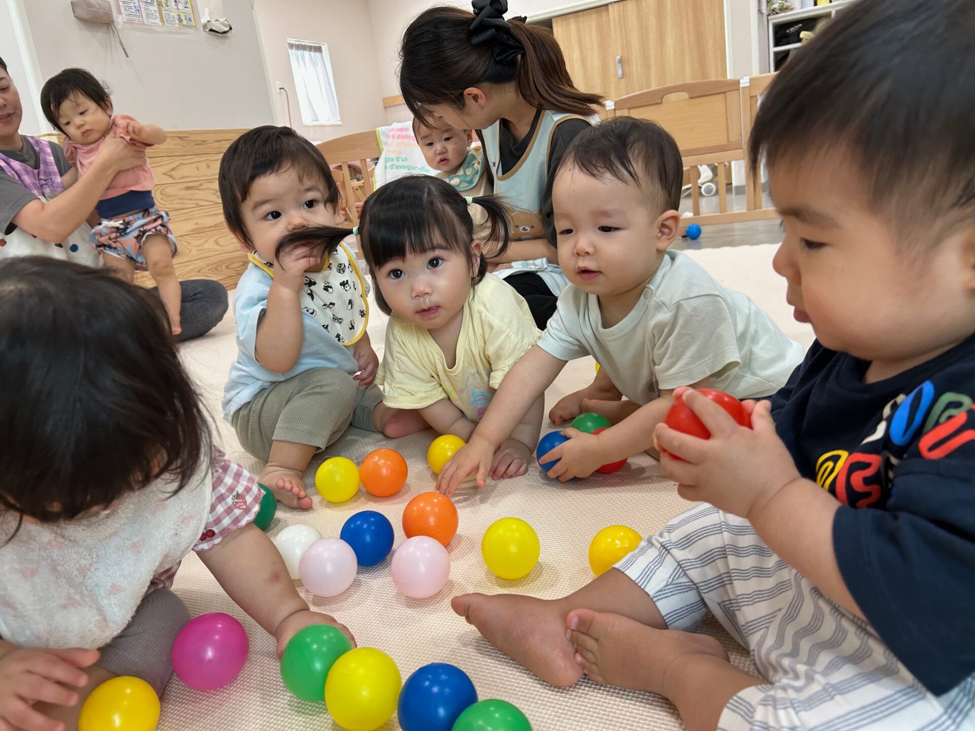 今回はうみ組(0歳児)ボール遊びの様子を紹介します。
