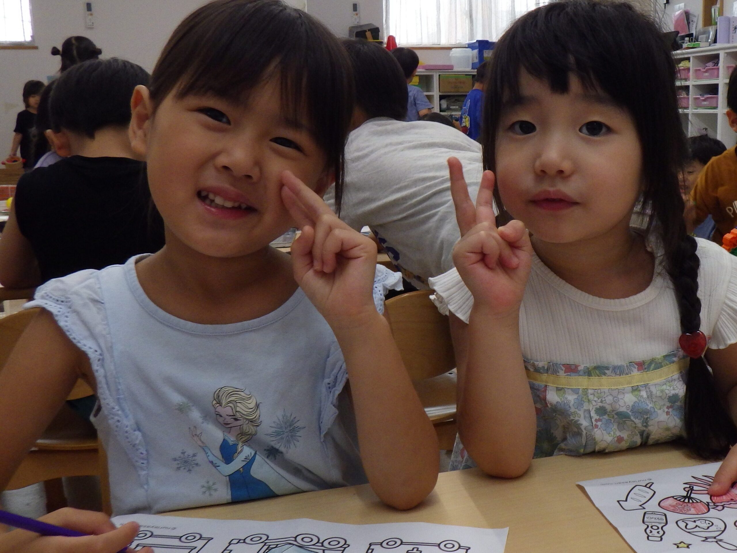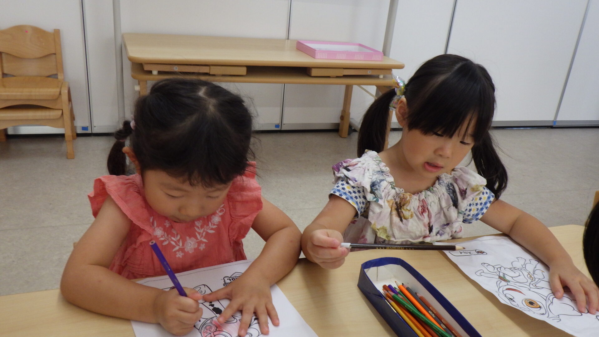 集中して色を塗ったり、友だちと見せあいっこをしたりと