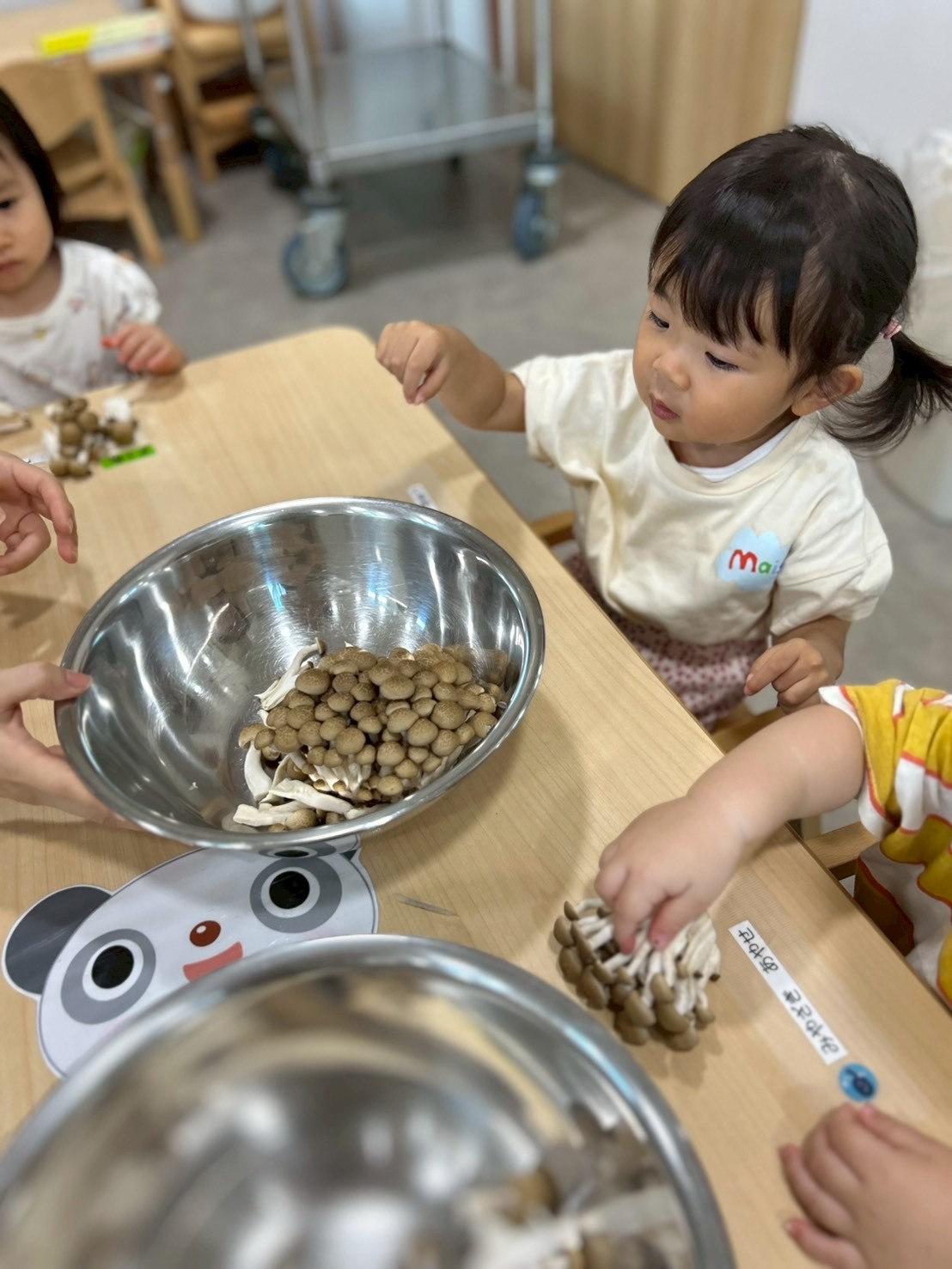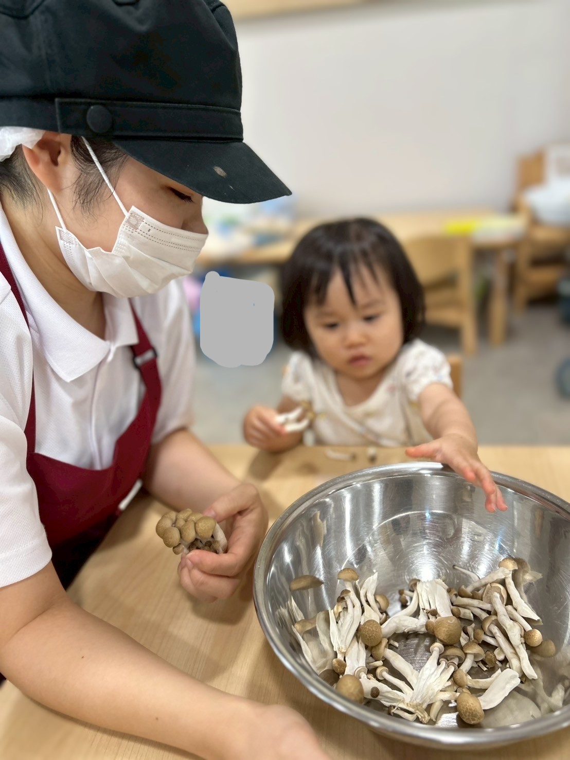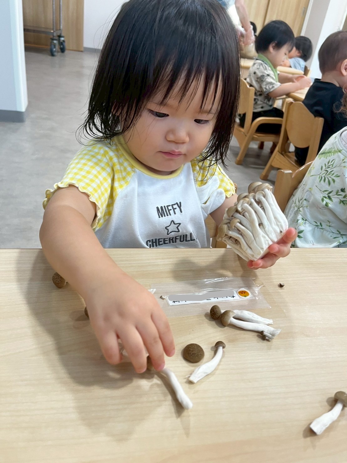 周りが楽しそうにしている姿を見て、最後にはたくさんの「きのこ」を細かく割けました!