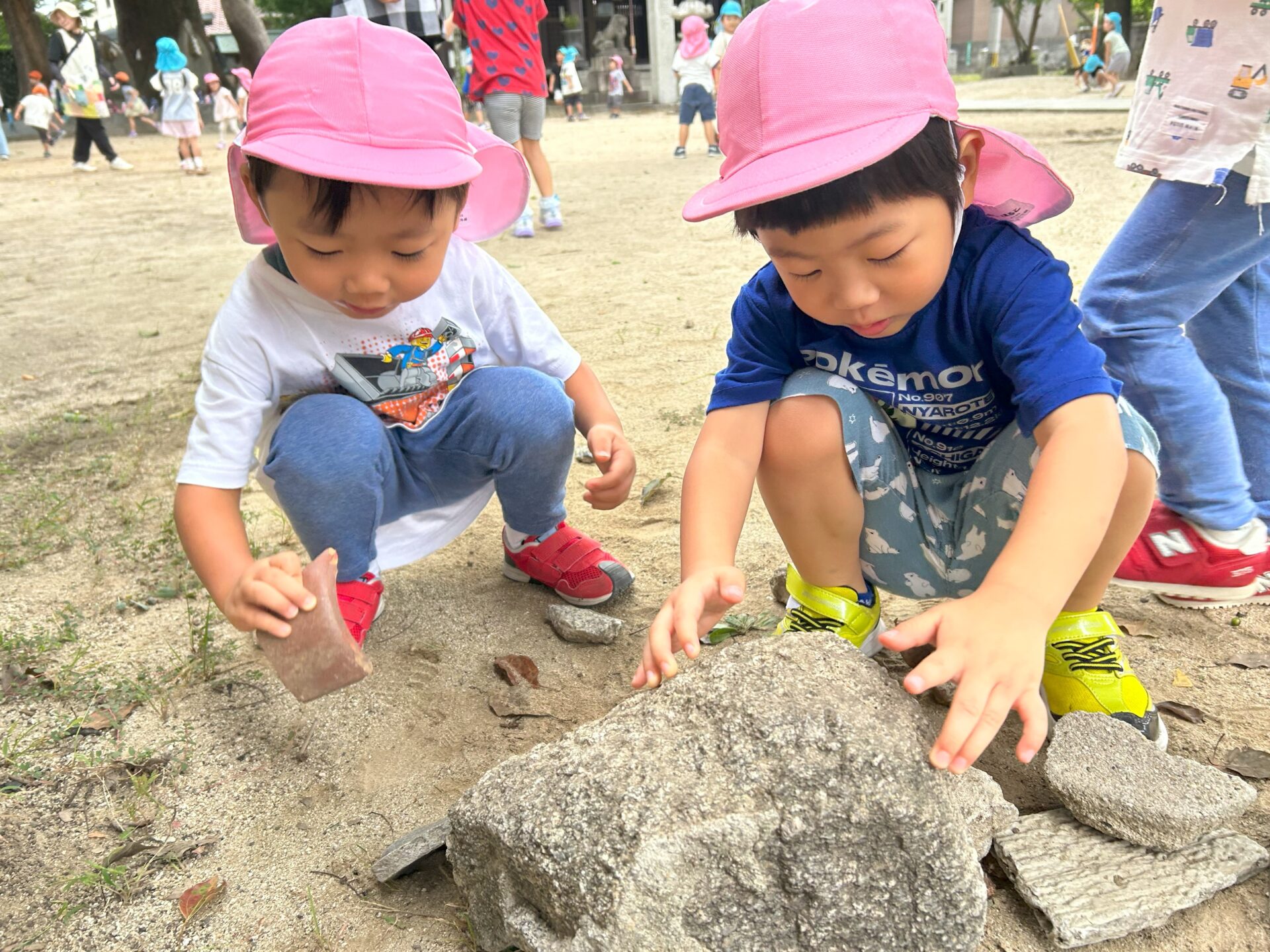 保育園の周辺を歩いて、園の畑や近くの田んぼを観察したり、電車を見に行ったり、神社まで歩いたりと、いろいろなお散歩コースを楽しんでいます♪