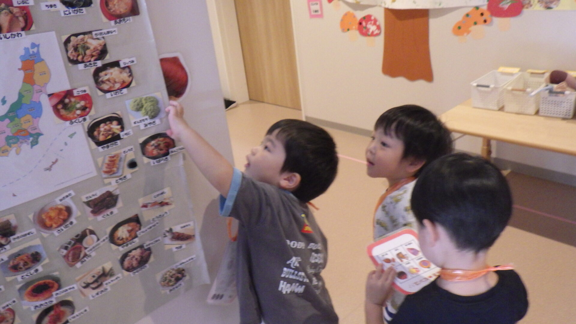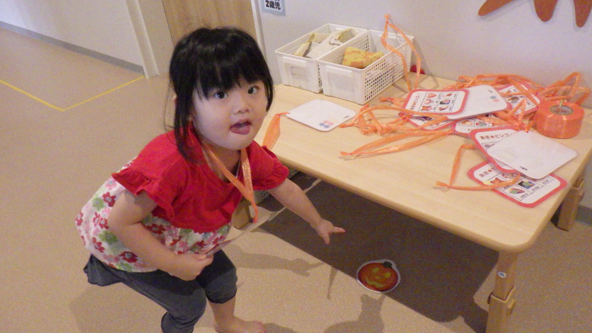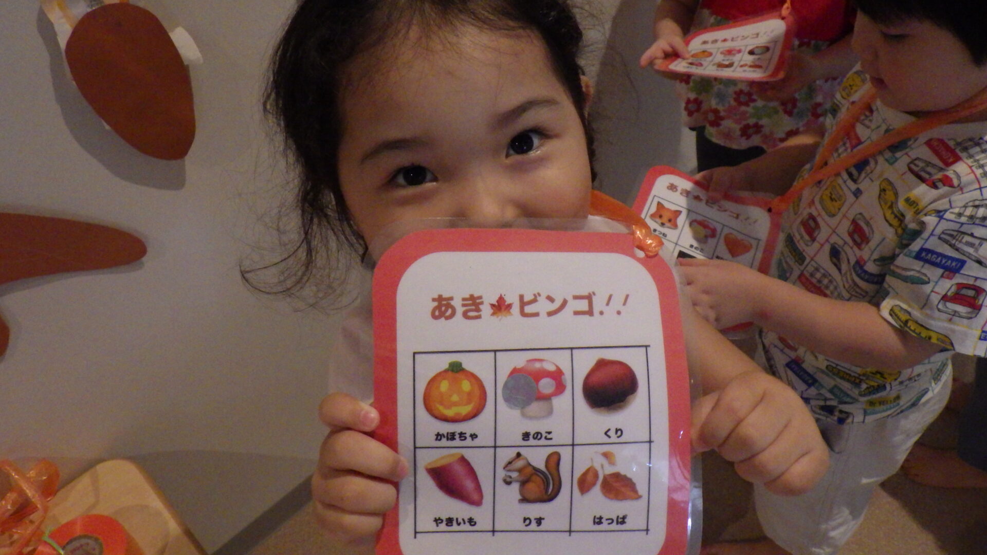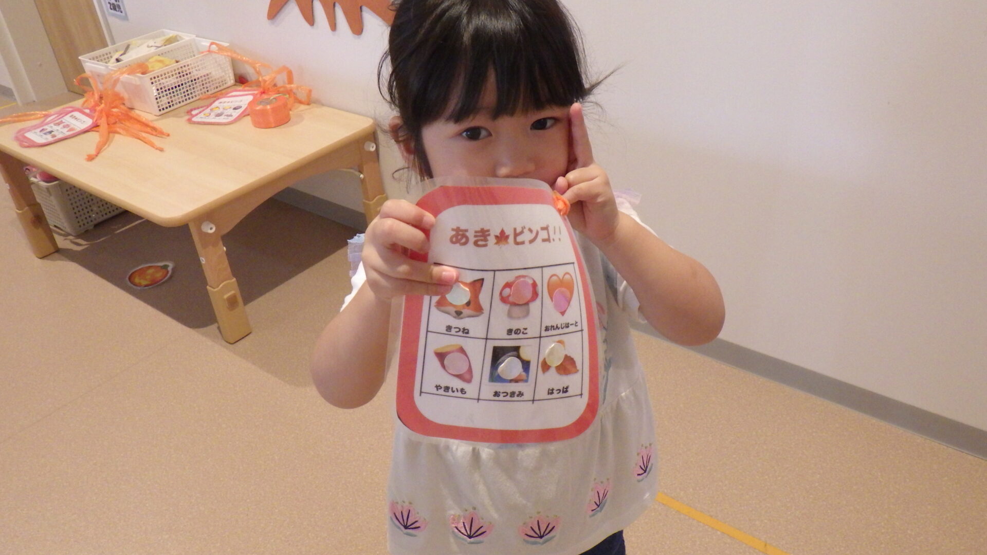そんな中、あめ組(2歳児)は【秋🍂】にちなんだ、あきビンゴをしました!
