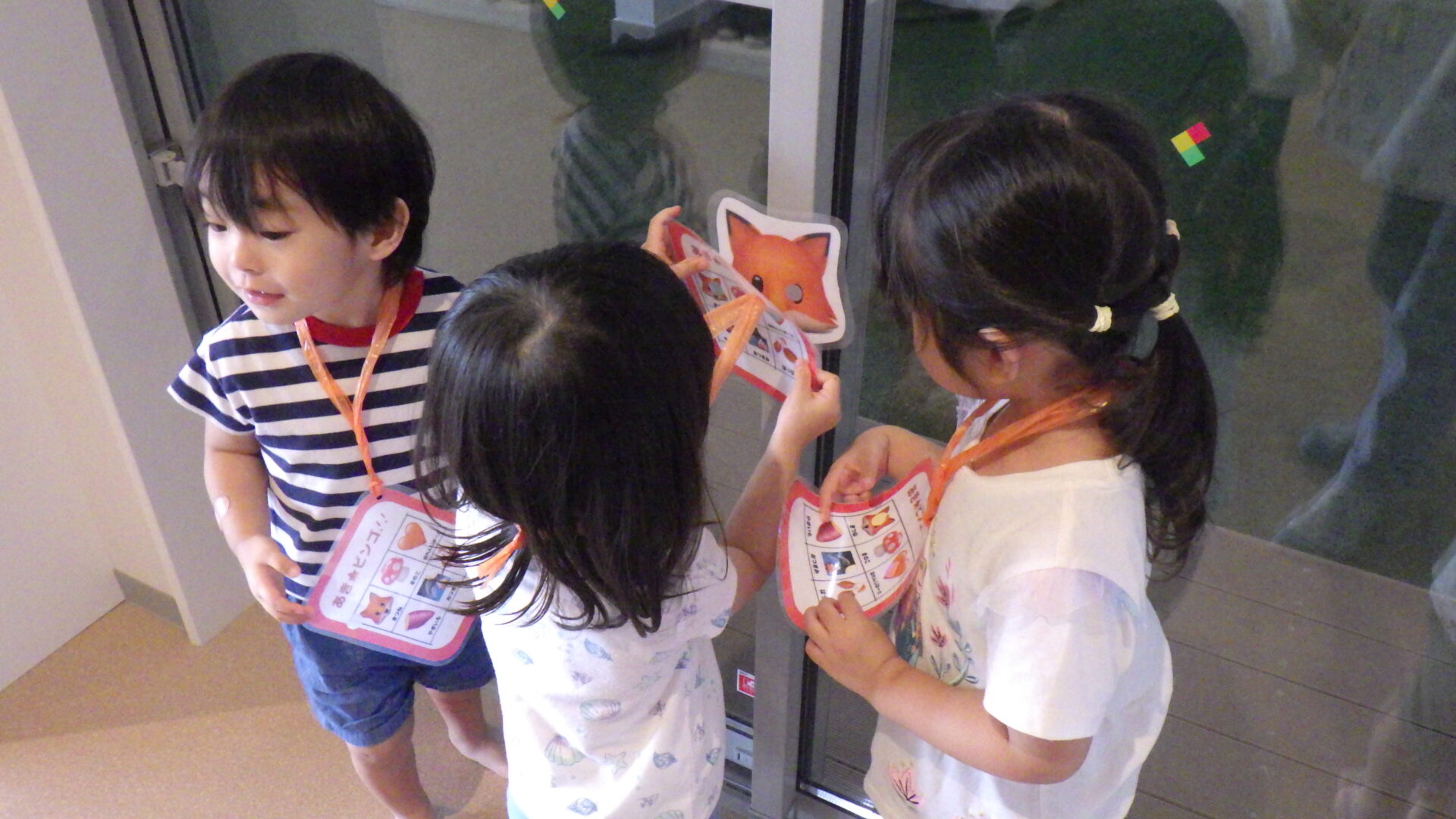 「あった!きつね🦊」持っているカードと見比べる子どもたち!