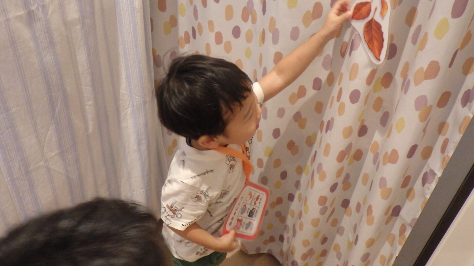 偶然見つけた、画用紙の葉っぱを一生懸命同じ絵柄として伝える可愛い場面もありました(#^.^#)