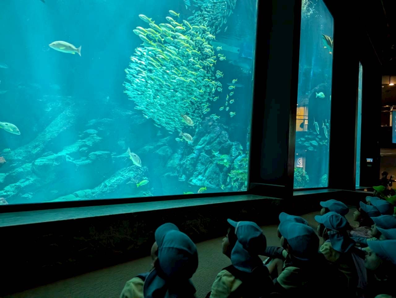 大水槽では『ダイバー魚ッチング』というショーがあり、ダイバーさんの解説を聞きながら、イワシの群れやサメなどいろいろな種類の生き物を見ることができました✨