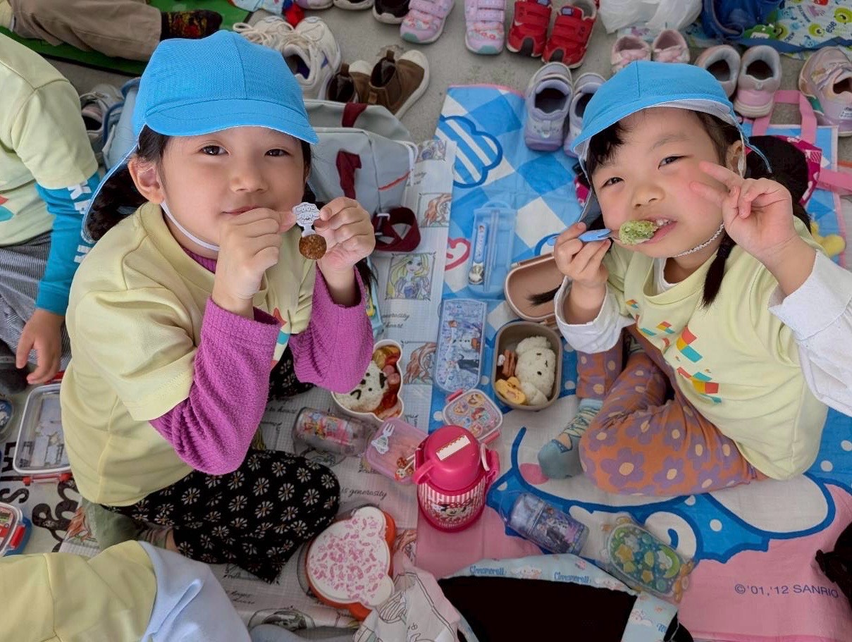 お弁当の中身を見せ合い、「卵焼き一緒だね!」「ウインナー入ってる?」と、楽しそうに会話が弾んでいました☆
