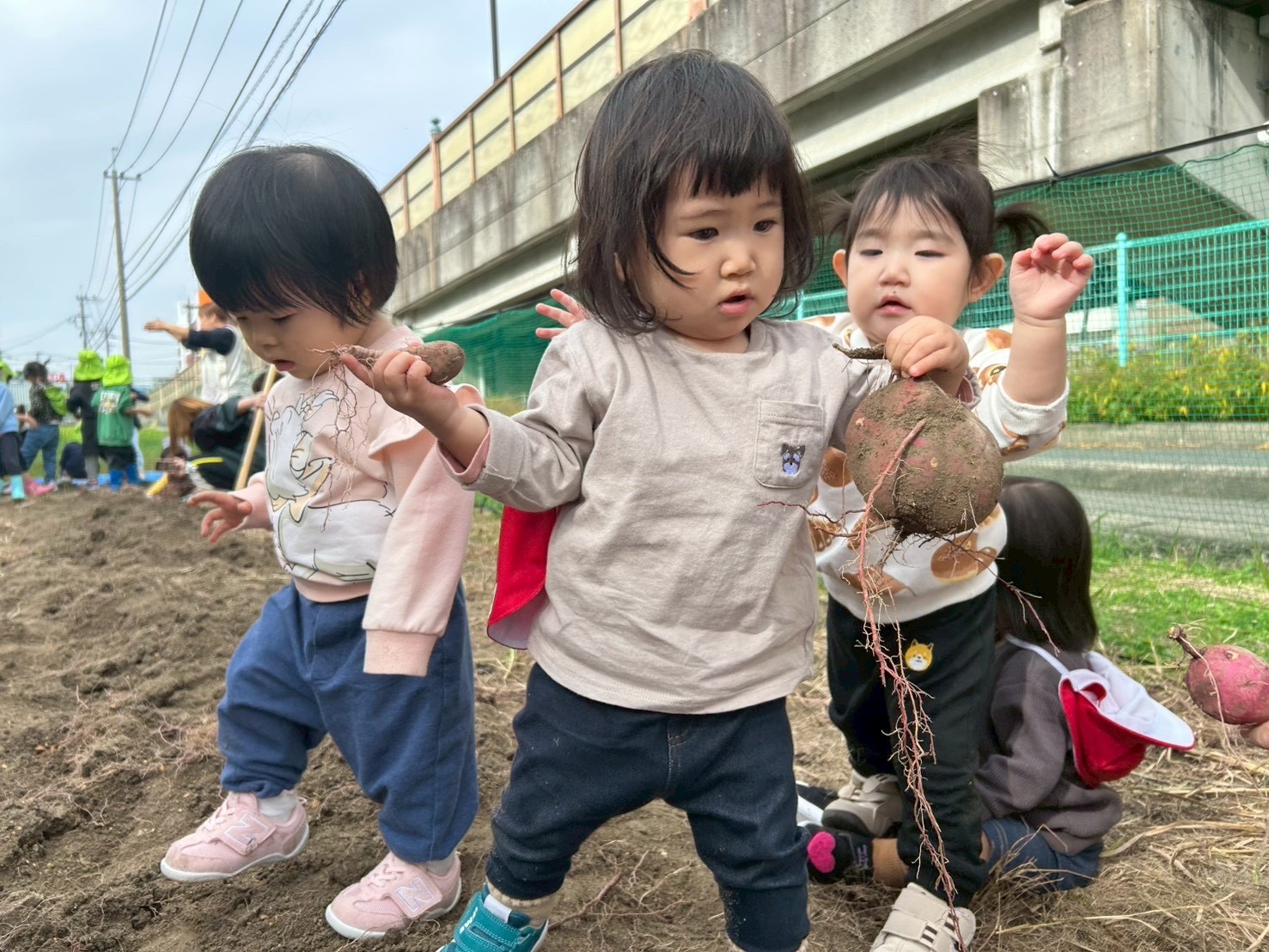 「今度おやつでたべようね~」という先生の言葉に、((これ食べるの?))と不思議そうな顔をするお友だちもいましたが、芋ほりの雰囲気を楽しめて、大満足のうみ組・だいち組さんでした。