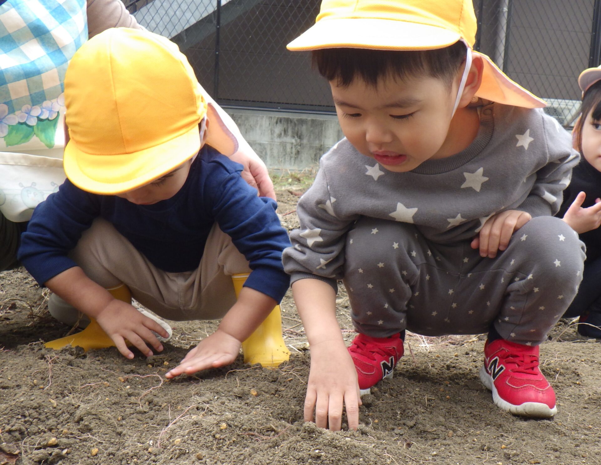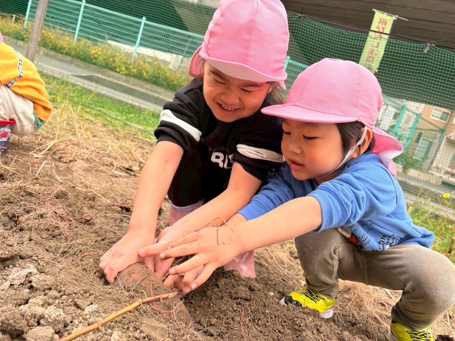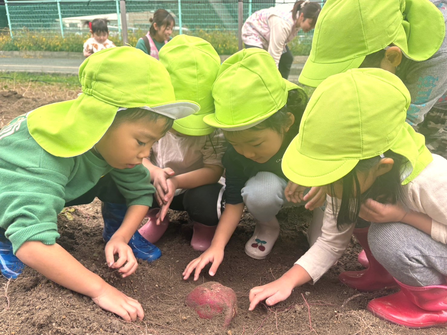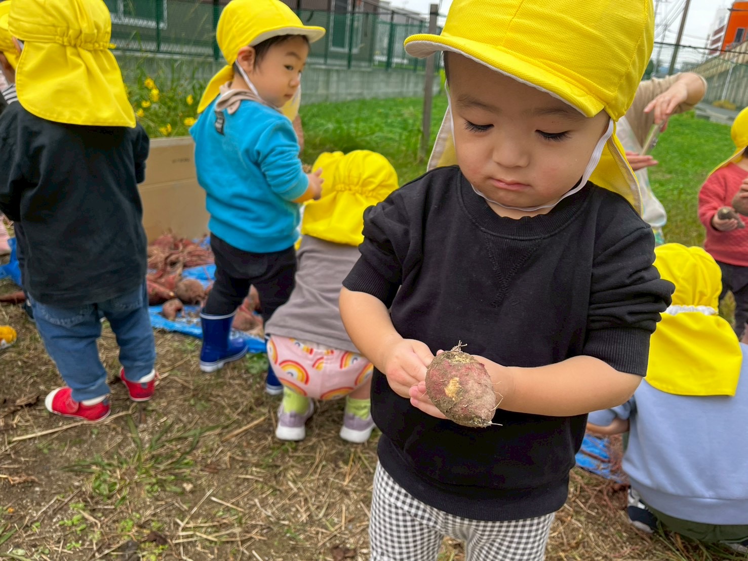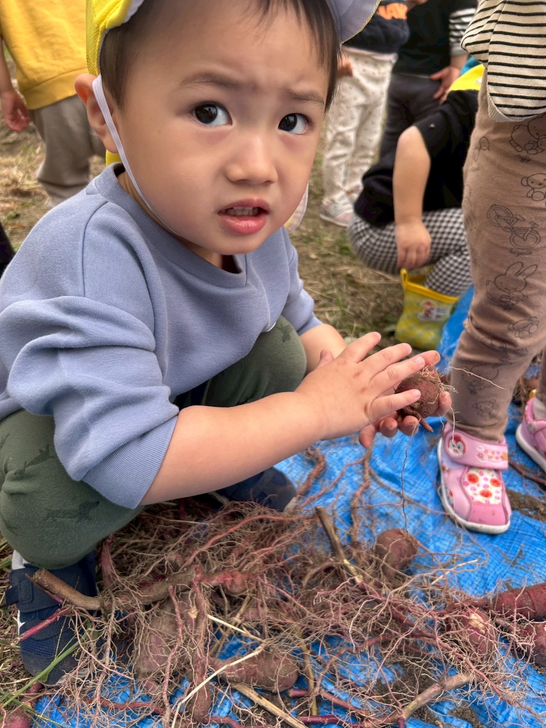 お友だちが芋を見つけると、「キャハハハ~」みんなで大笑い( ´艸`)