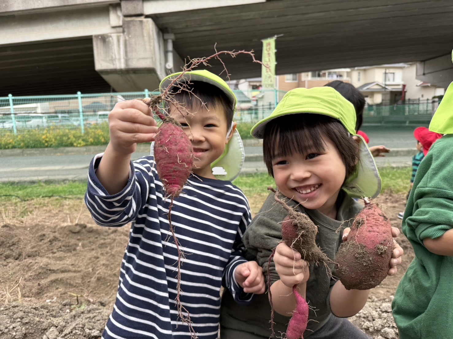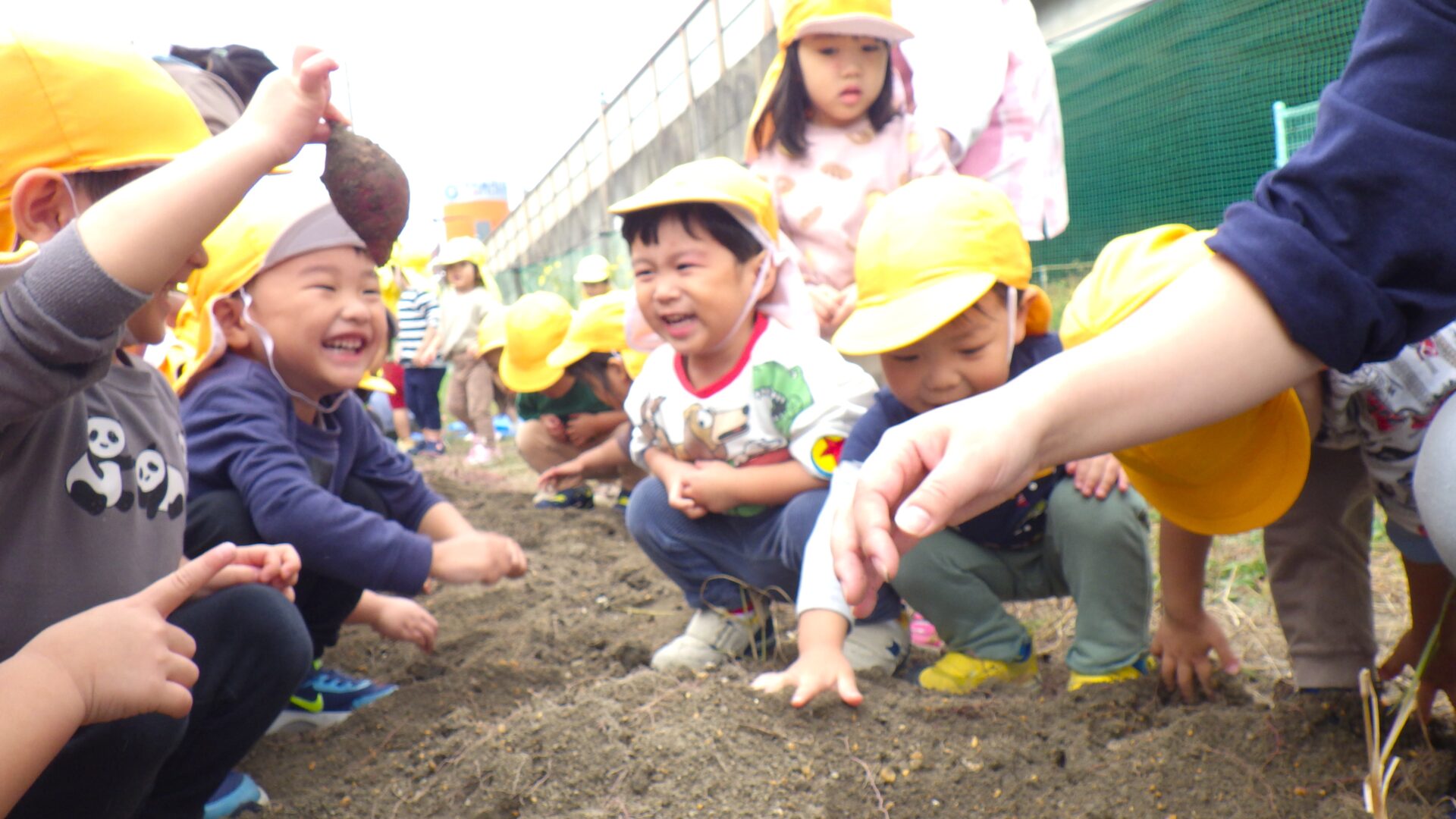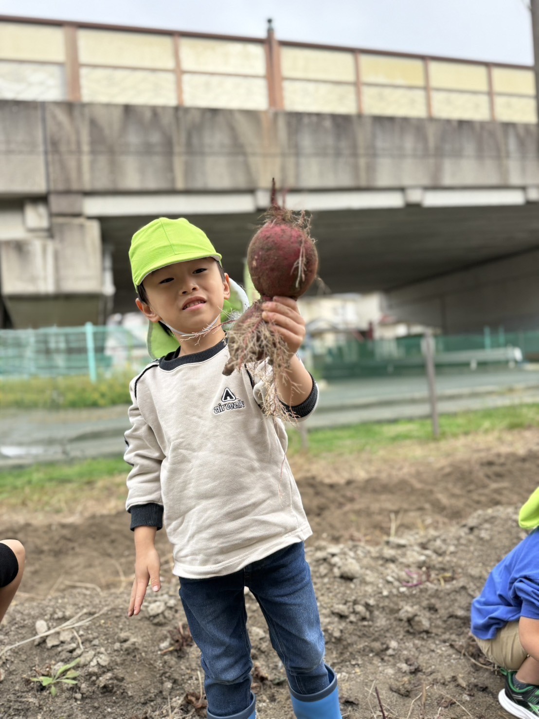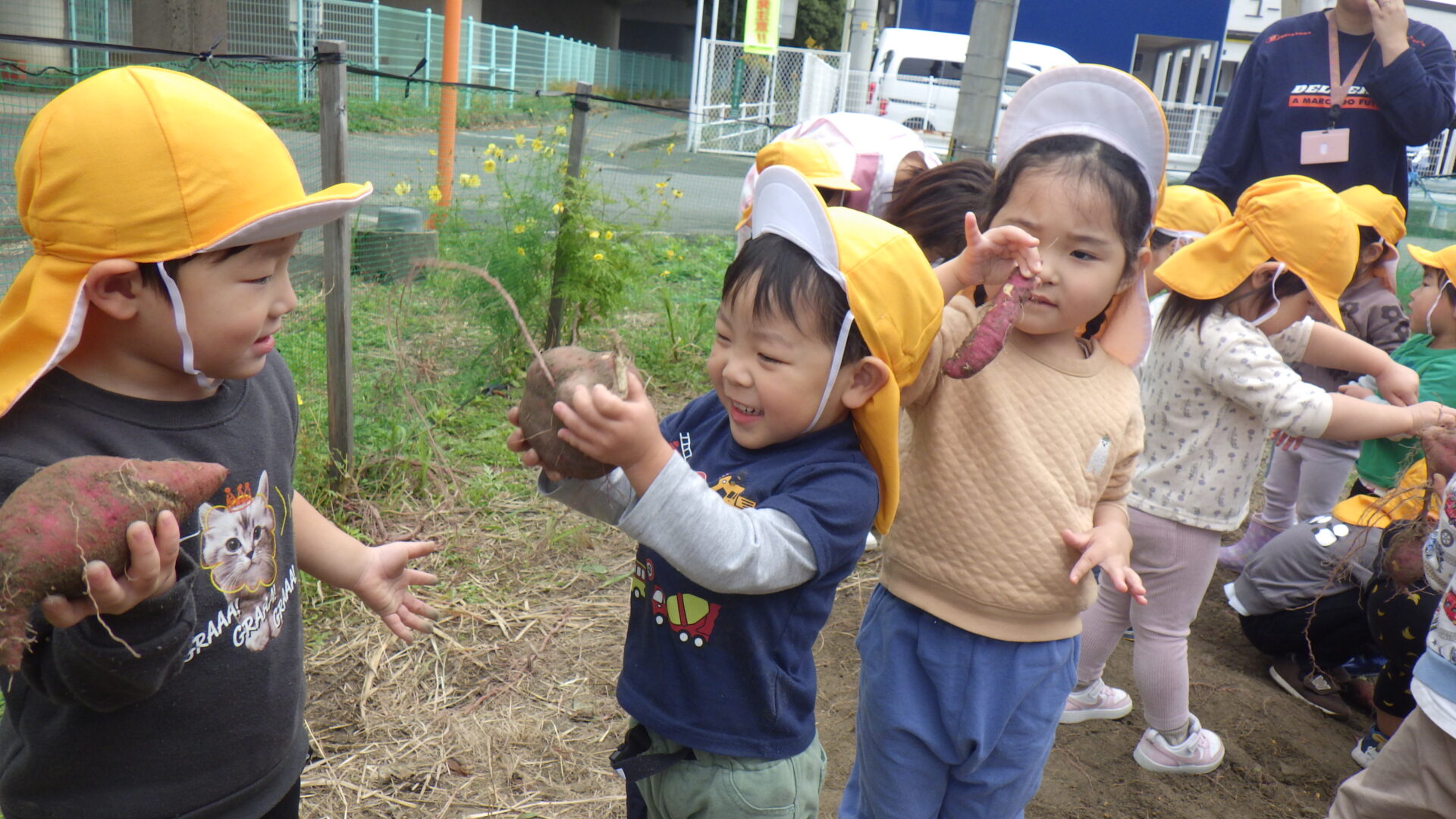 園周辺に響き渡る大きな声で、収穫の喜びを表現してくれました。