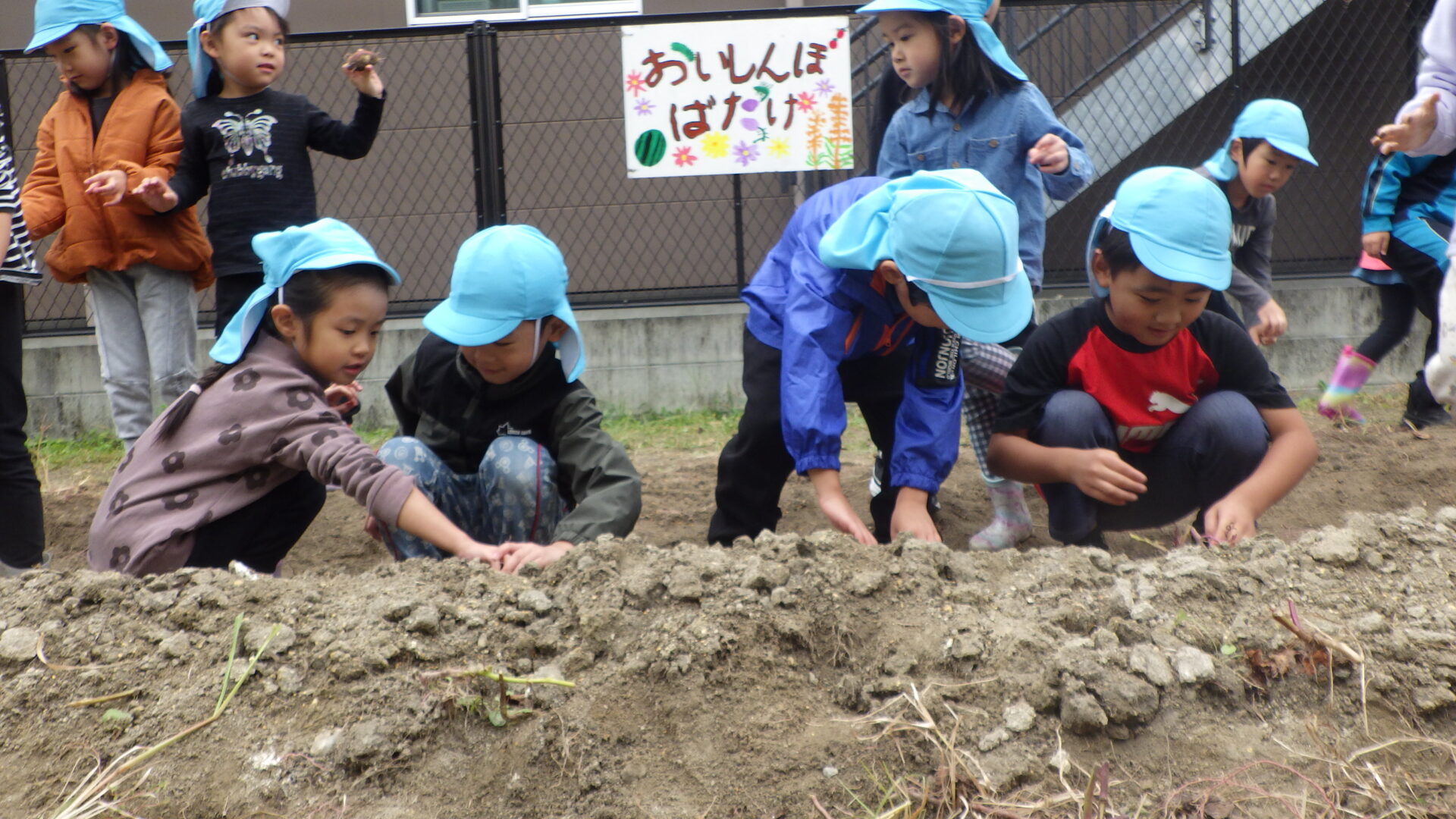 くじら組の畝だけは、事前準備なしで子どもたちに任せてみましたが・・・