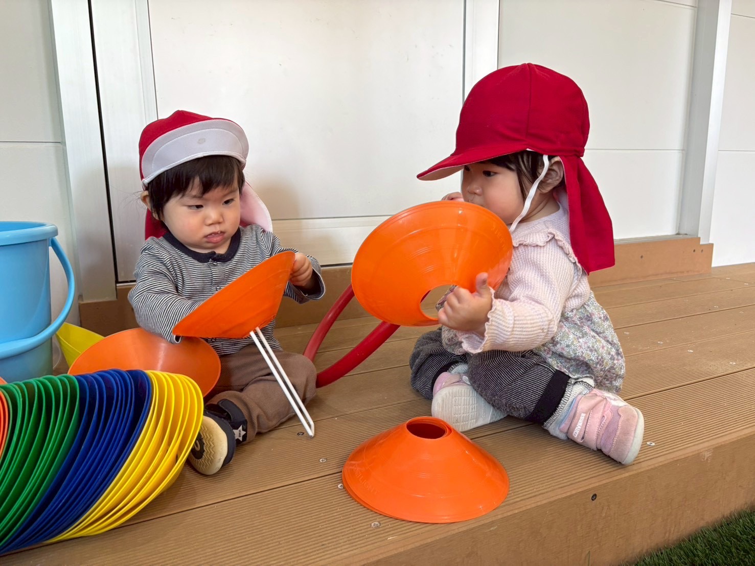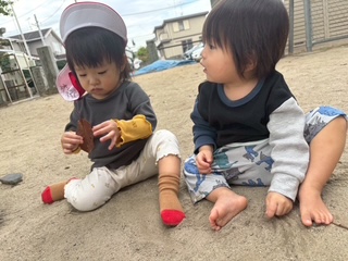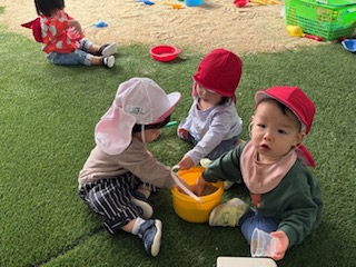 砂の落ちる様子を観察して楽しんだり、お友だちと1つの玩具をみんなで使ったりと
