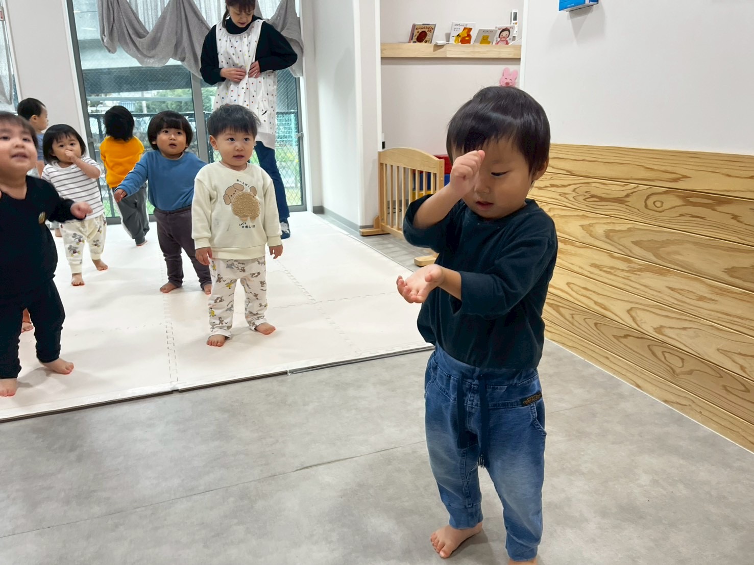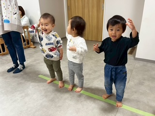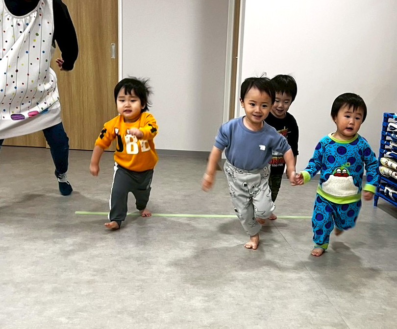 体を動かすのが大好きなだいち組(1歳児)。