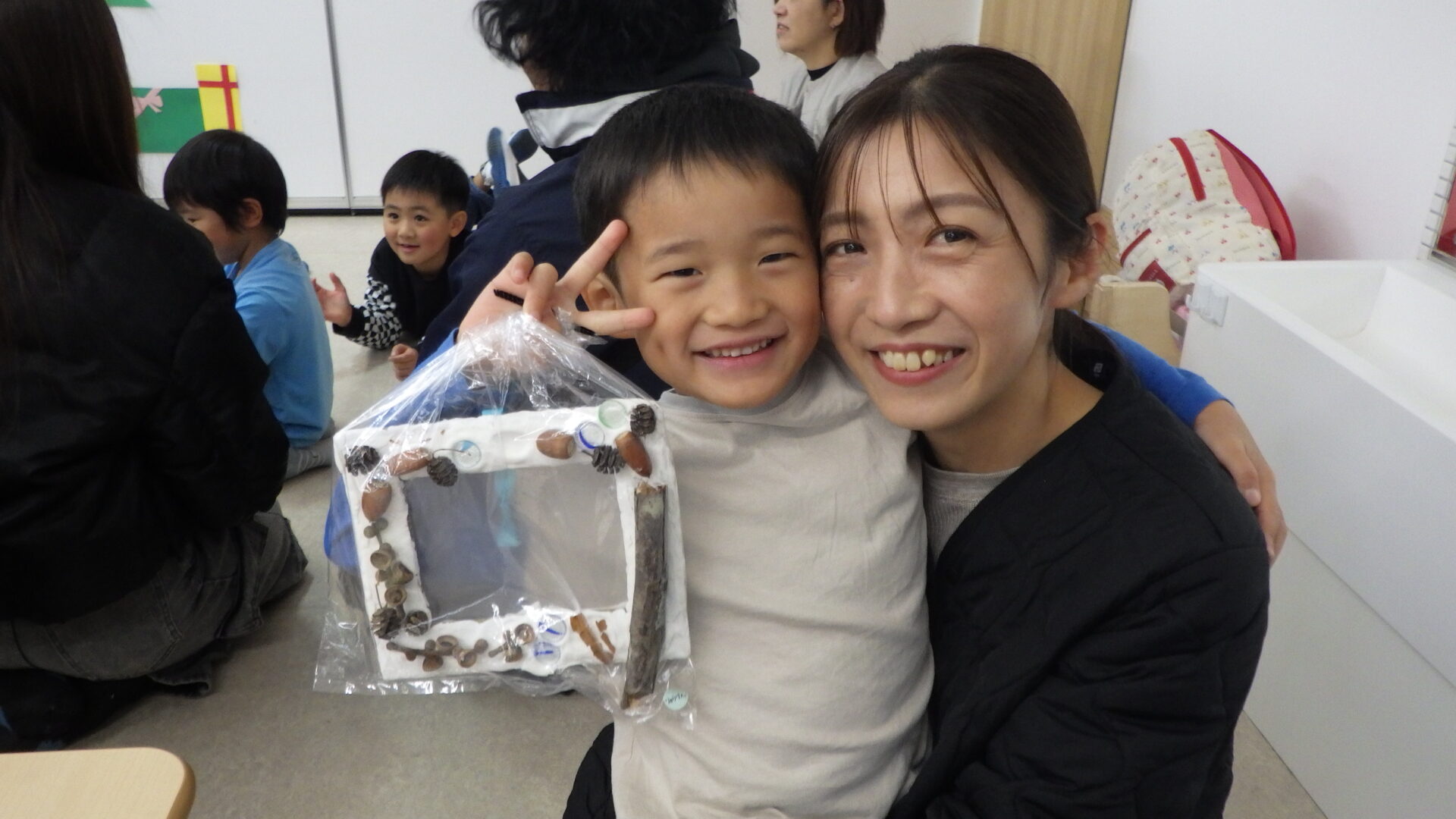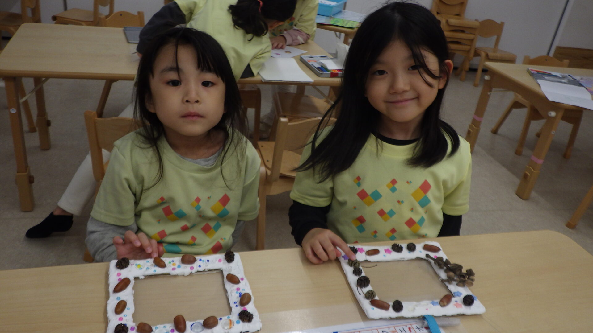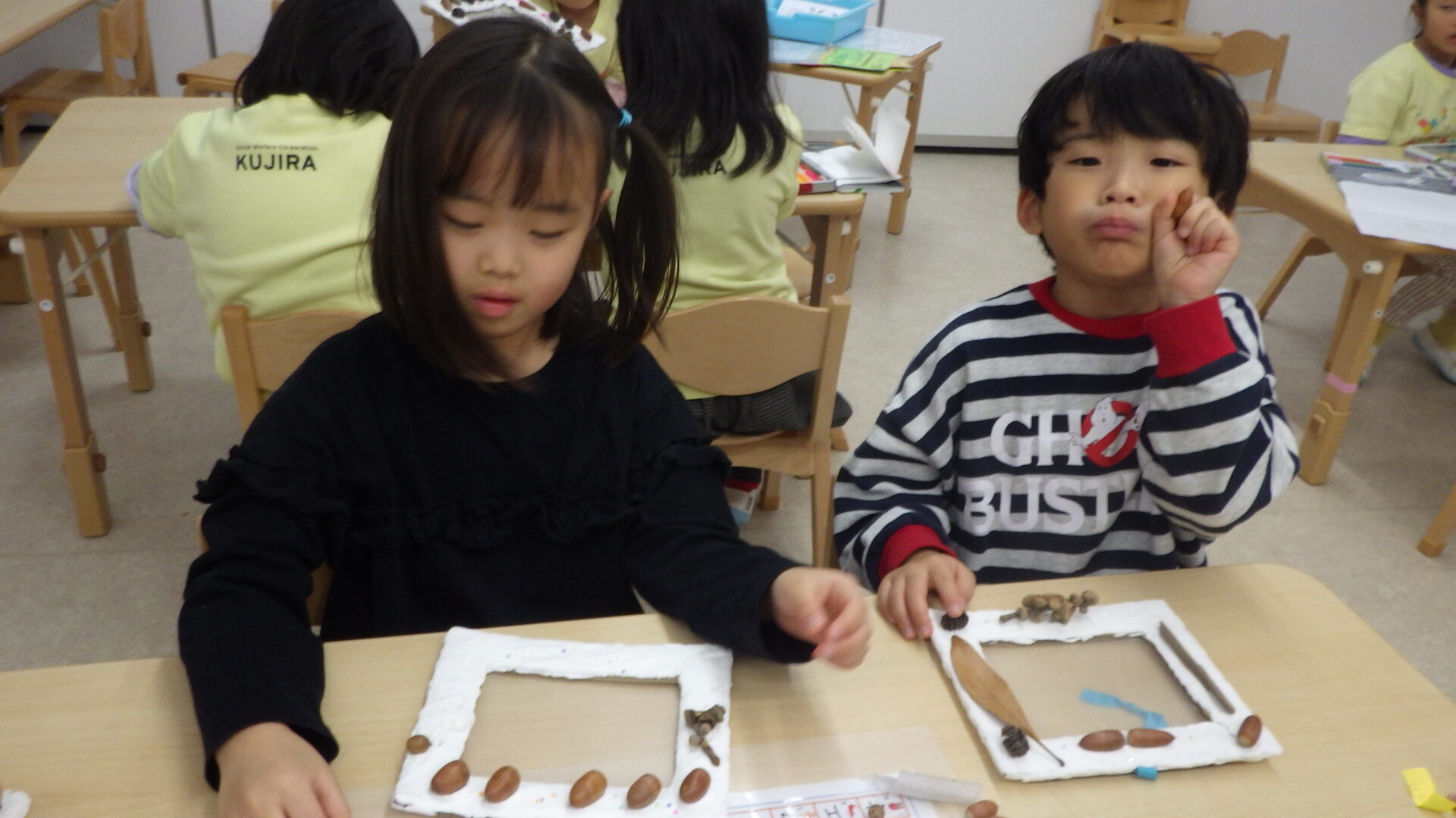 「ここにどんぐり付けたらかわいくなりそう!」「ママたち喜んでくれるかな?♡」