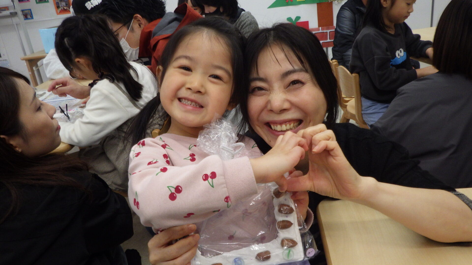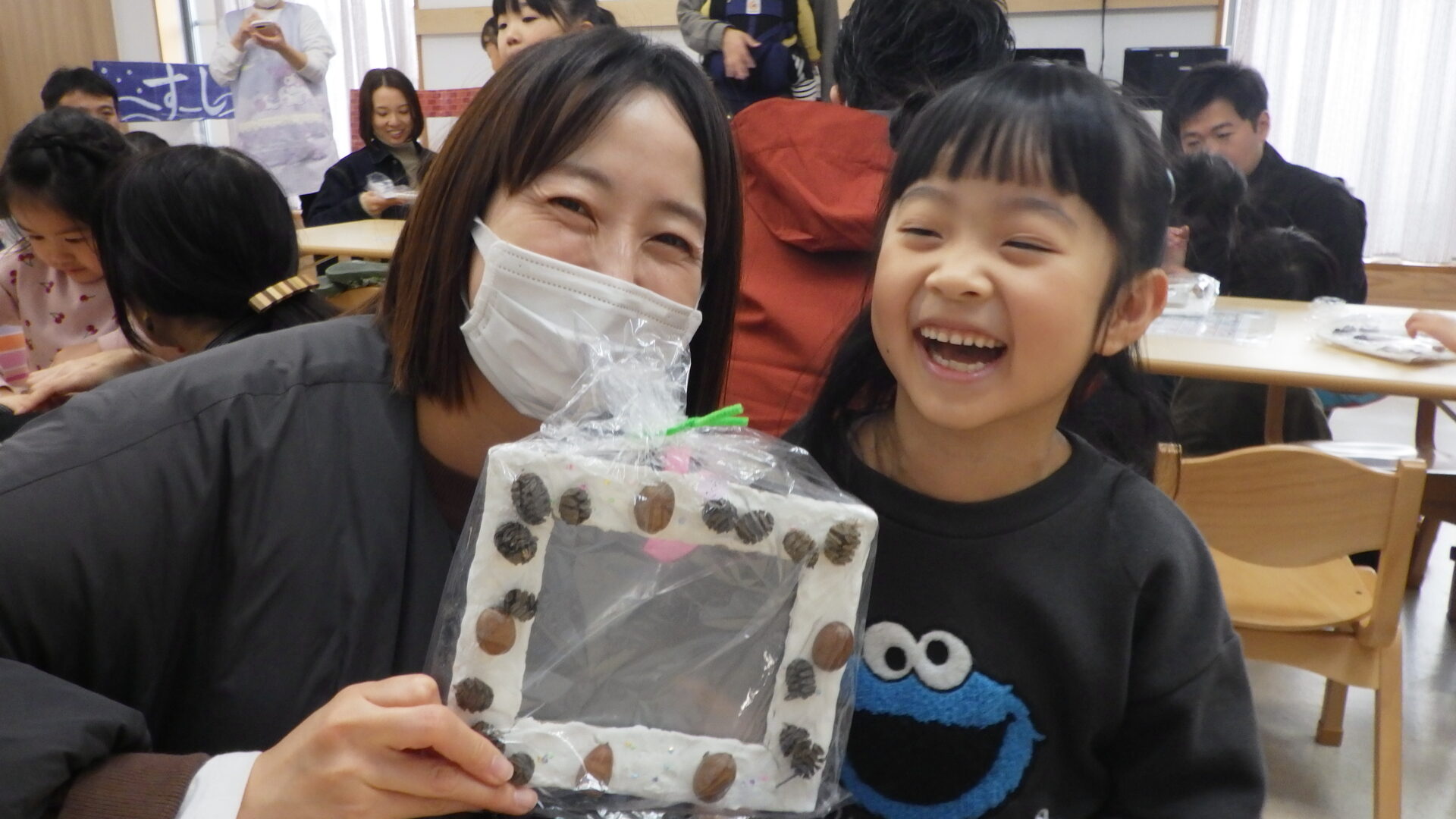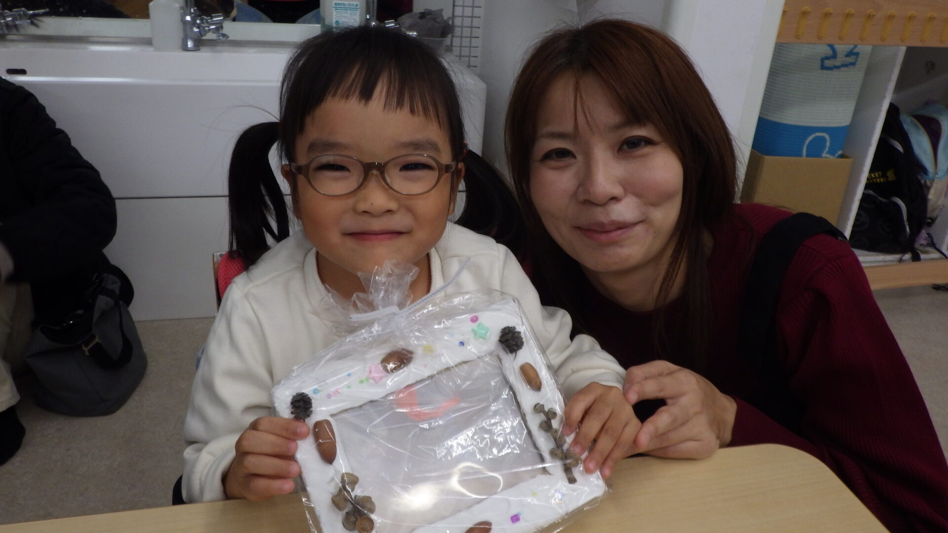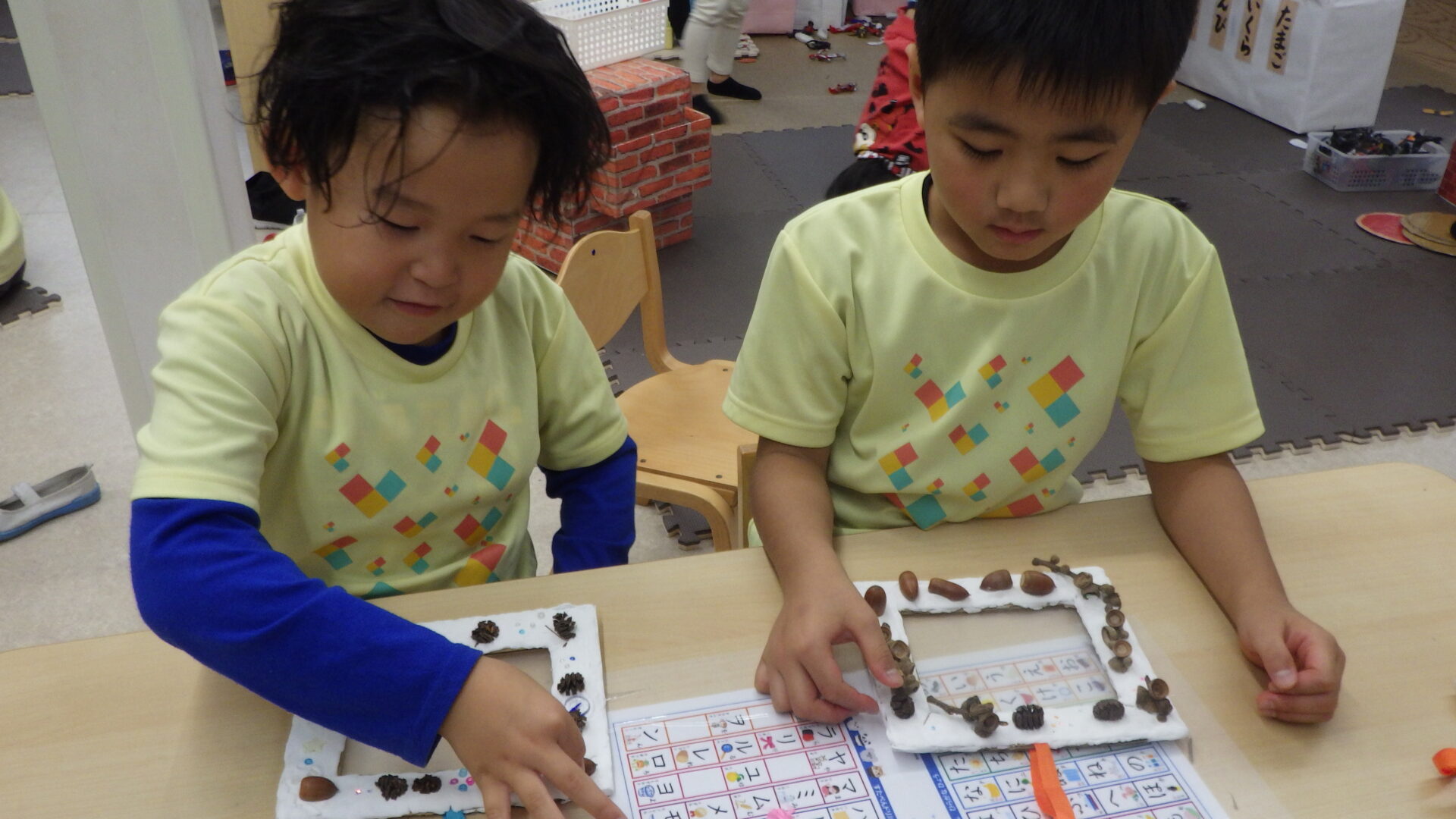 「ここにどんぐり付けたらかわいくなりそう!」「ママたち喜んでくれるかな?♡」