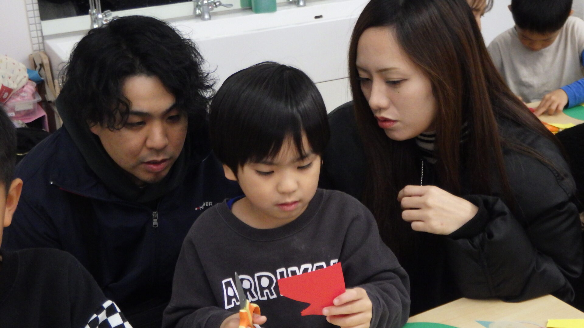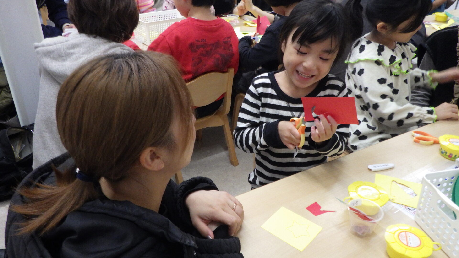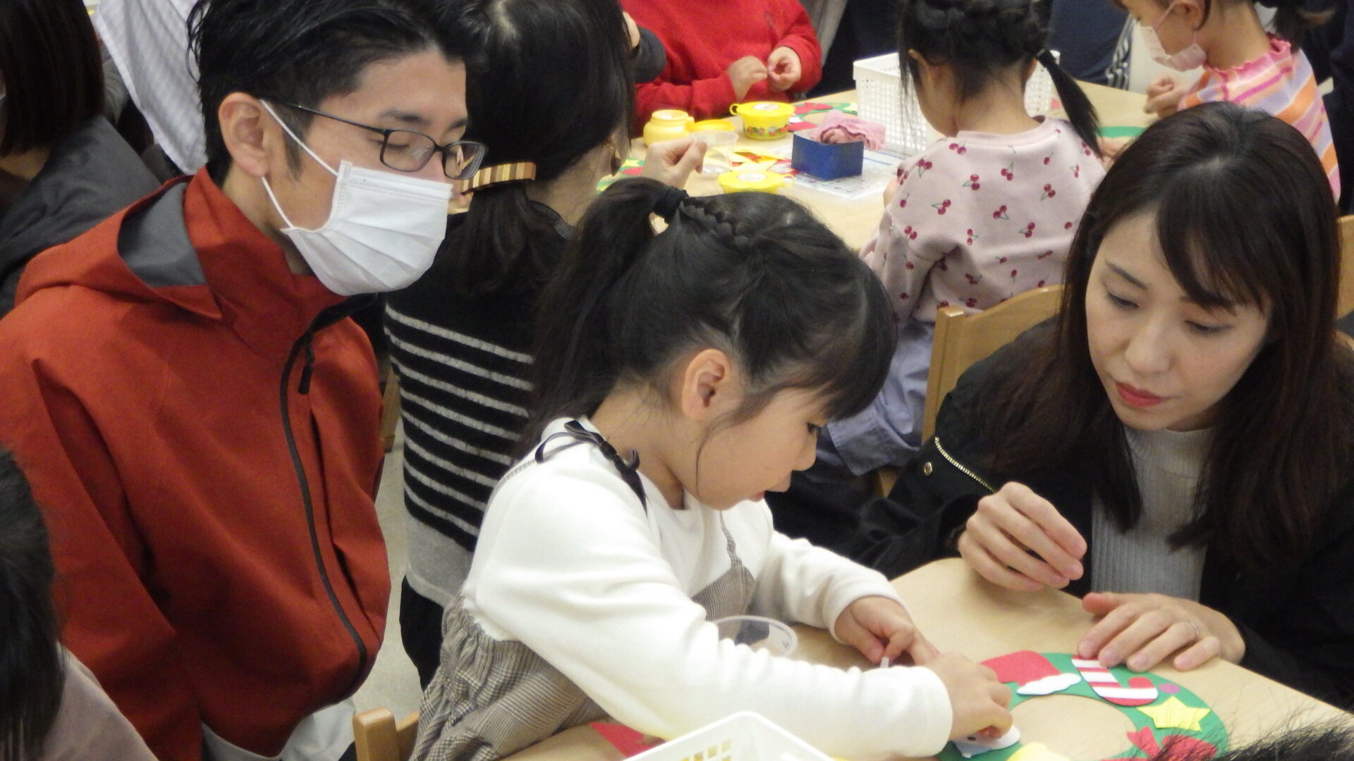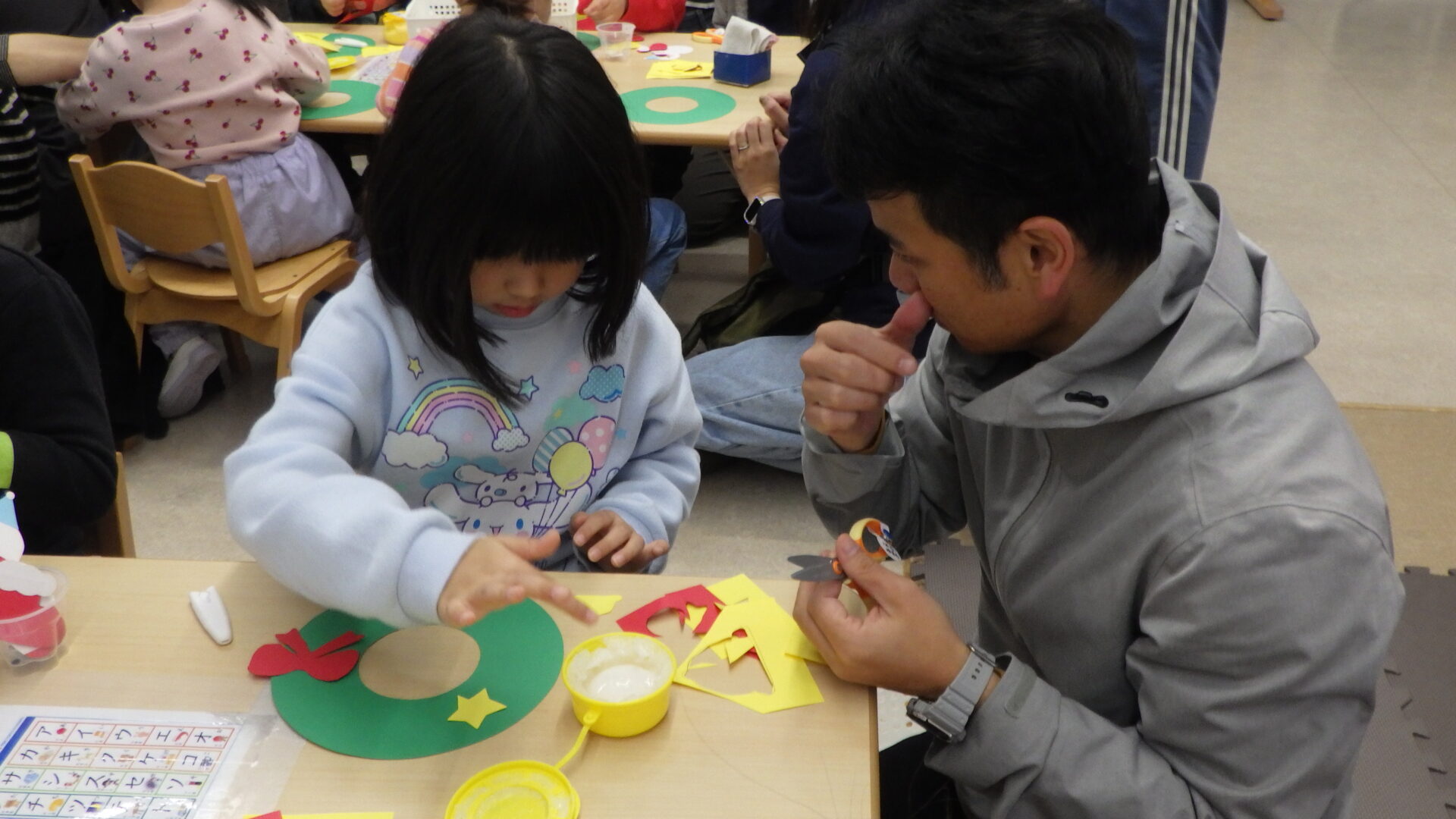 保育士の話を聞き、いよいよ親子製作のスタートです!✨