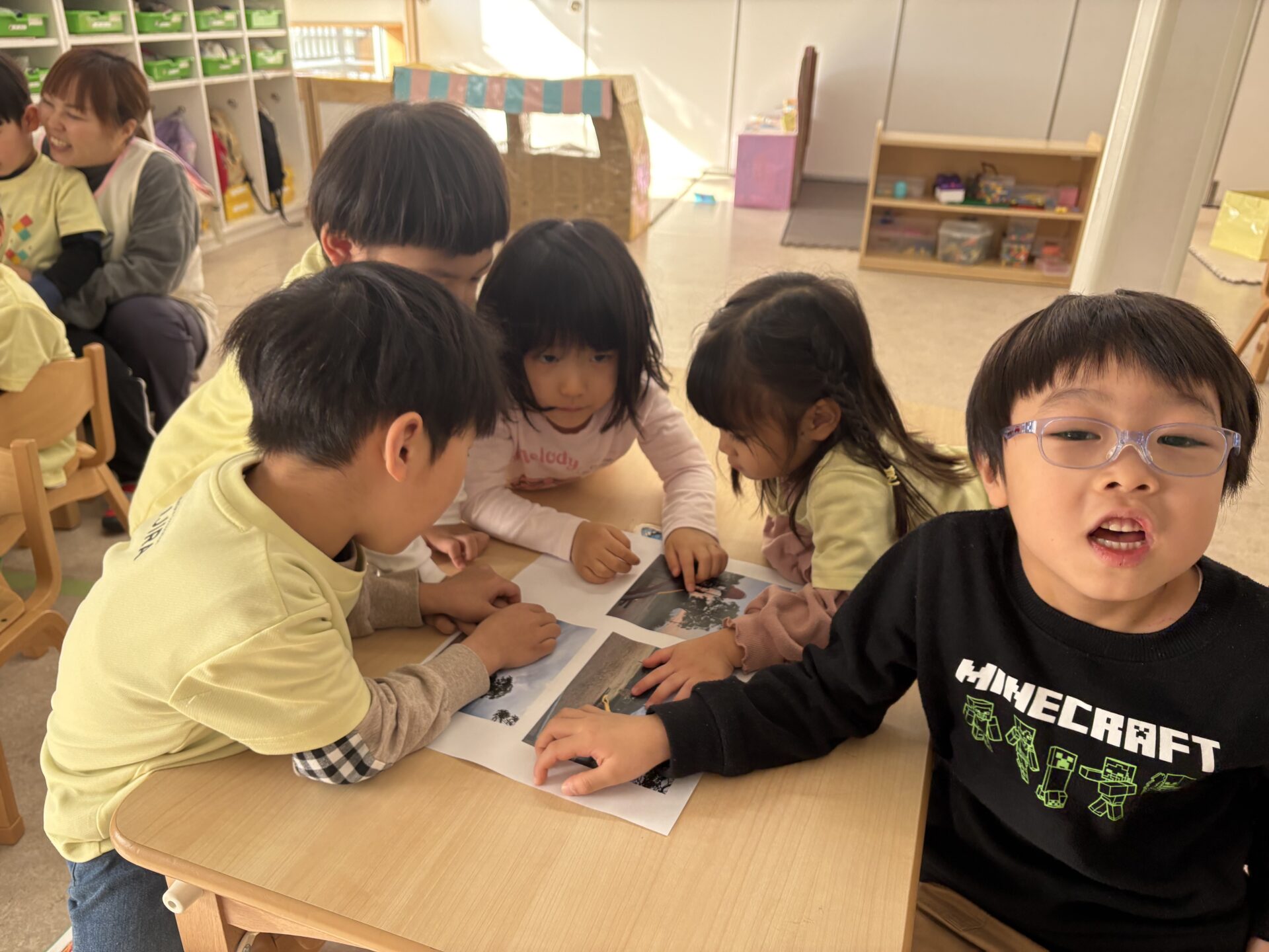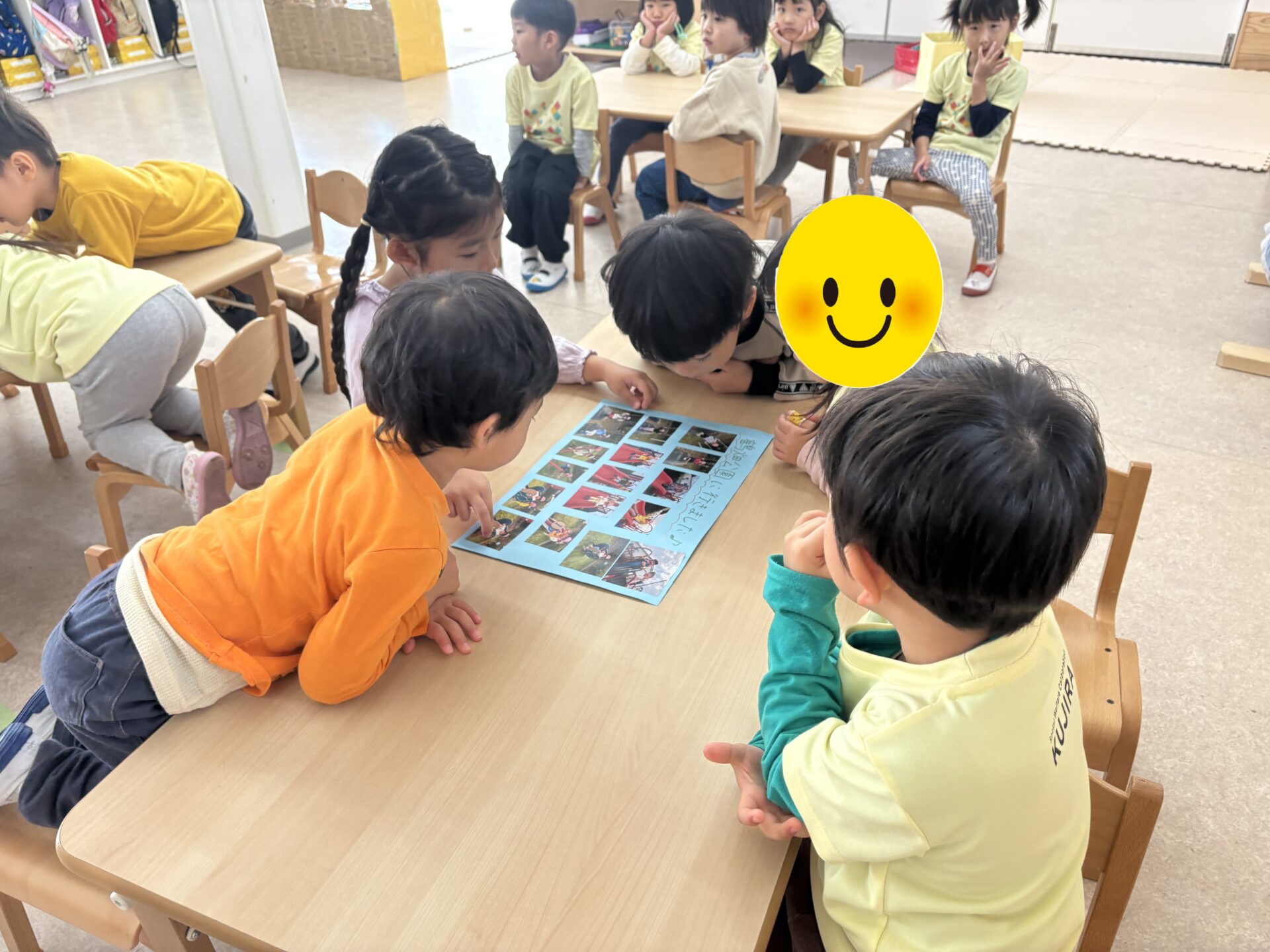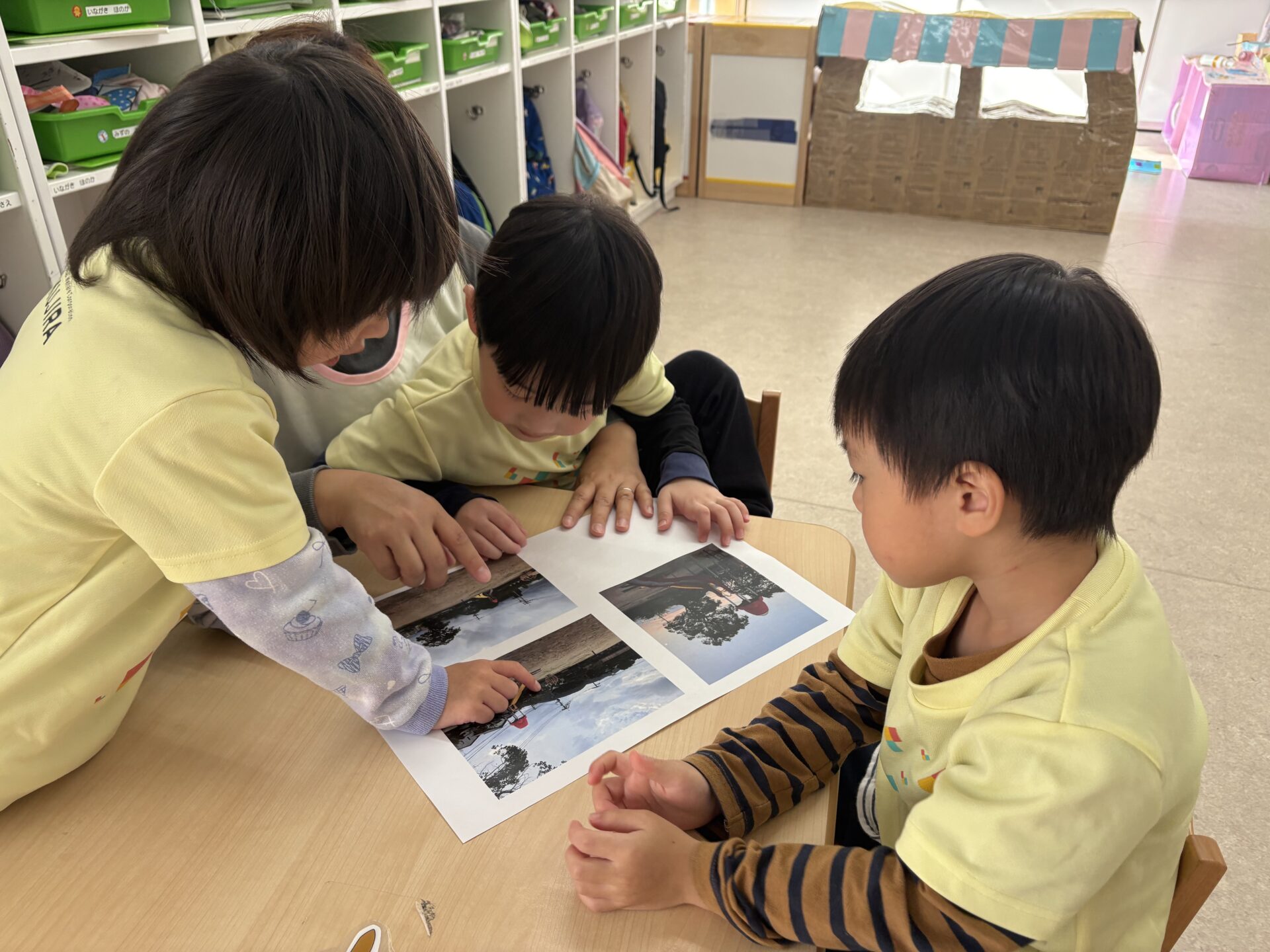 お散歩が大好きなそら組(4歳児)は、公園の写真を見ながら