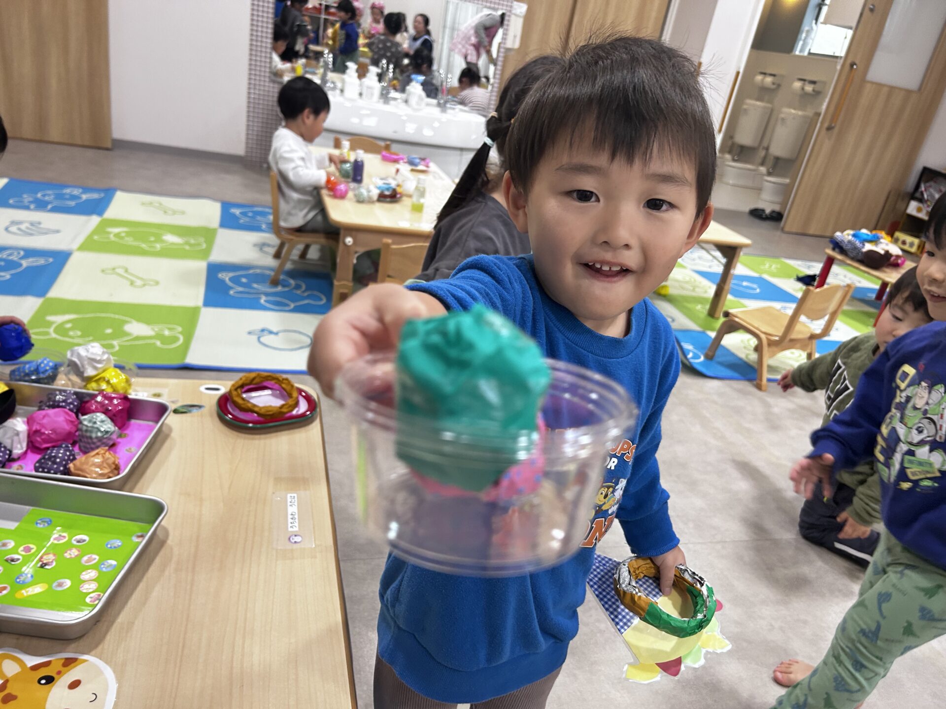 Aちゃん「お金をくださ~い!」と、本物さながらのごっこ遊びに展開し楽しむ姿もありました♪