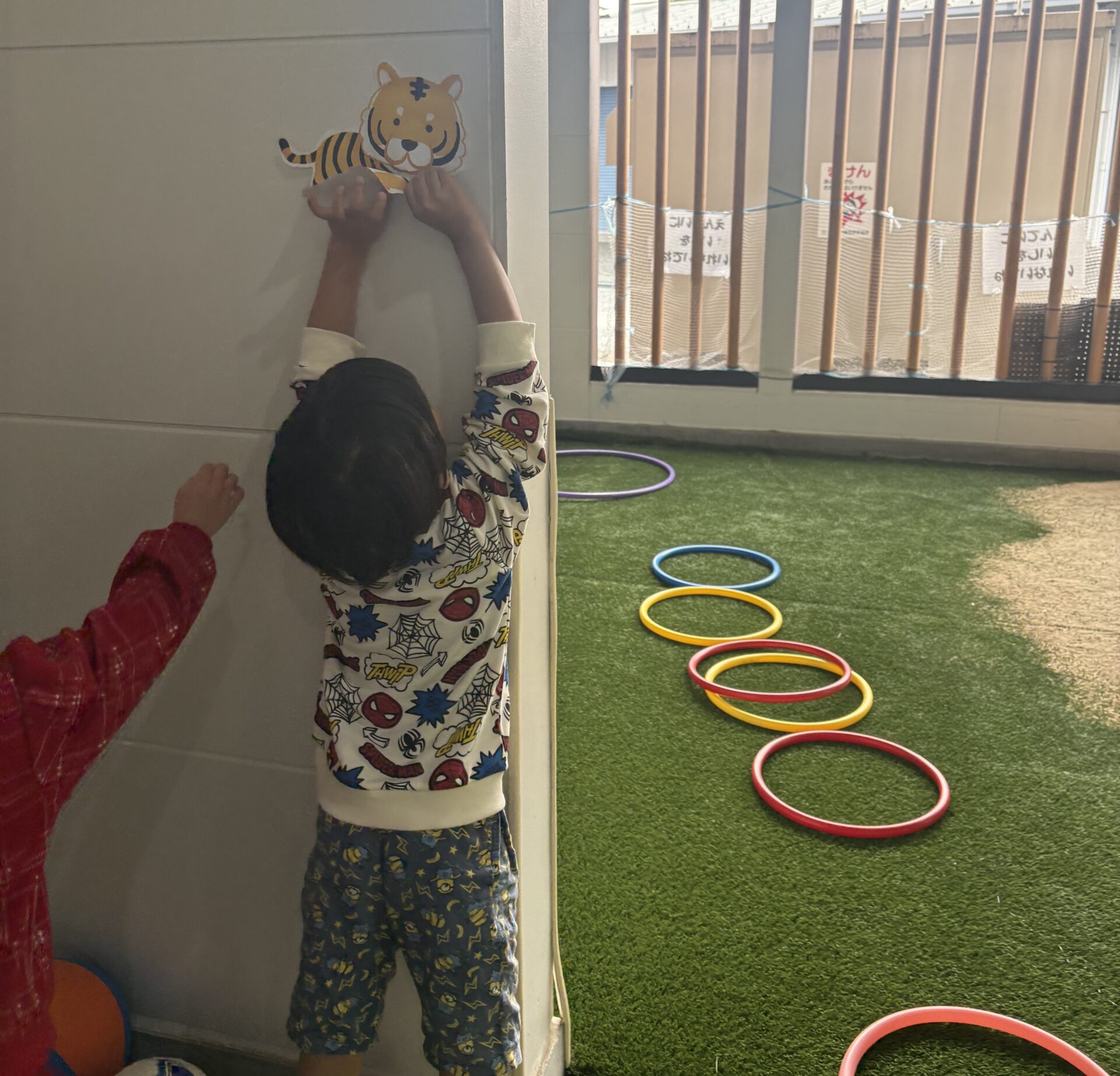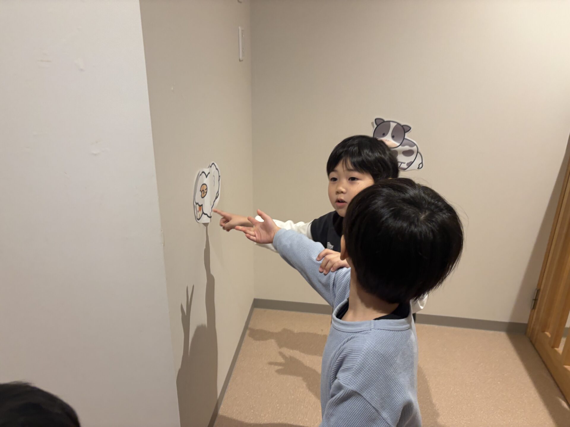 最後にはみんなで見つけた十二支の動物を壁に貼って写真を撮りました♡
