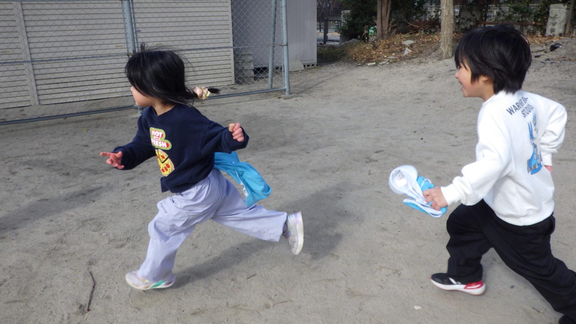 けいどろをしたりとたくさん体を動かし楽しみました♪(↑警察役に捕まり、「たすけてー!」と言っています(* ´艸`)クスクス)