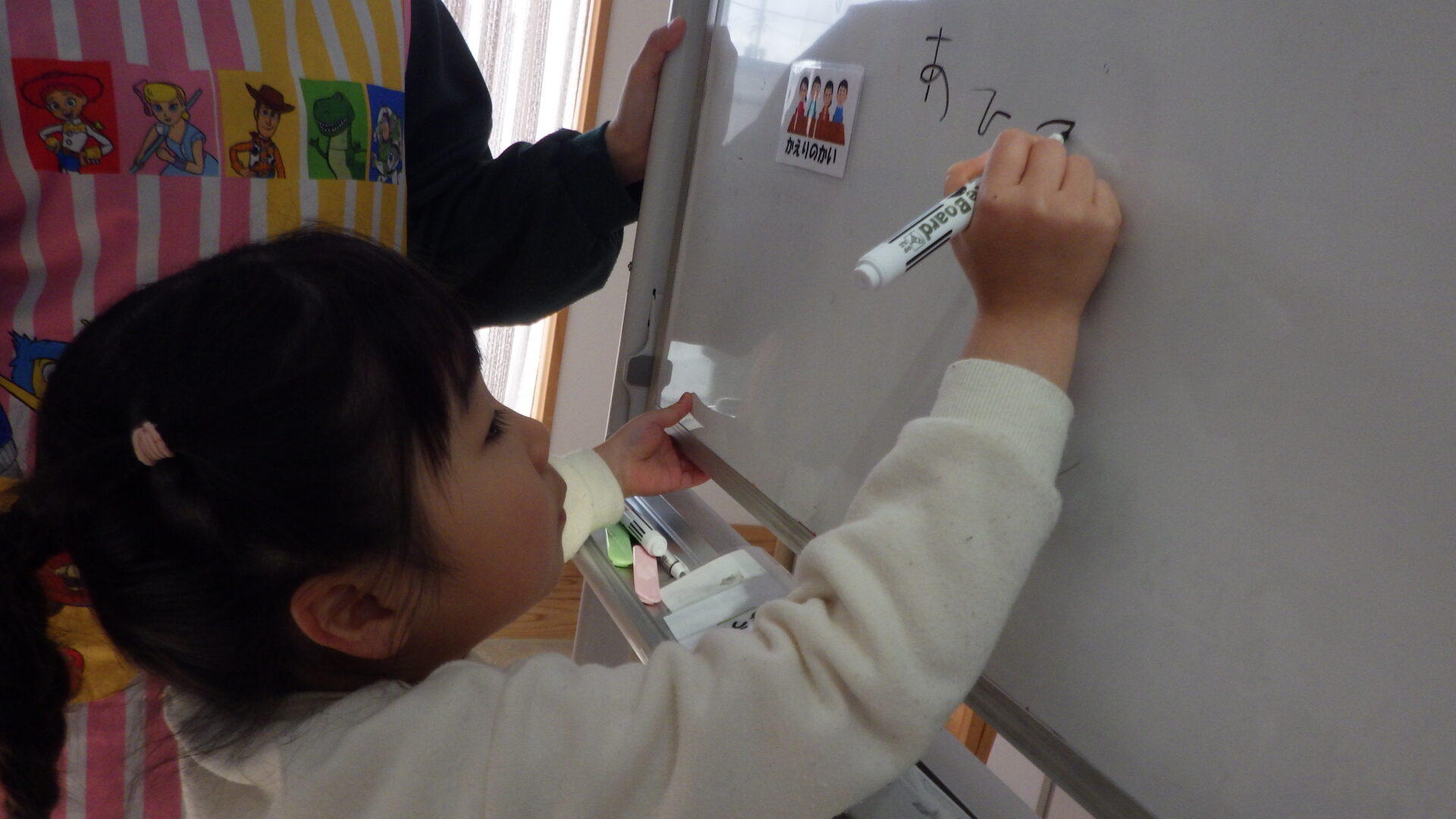 ボードに文字を書いたりと、文字に関する勉強をしました✍