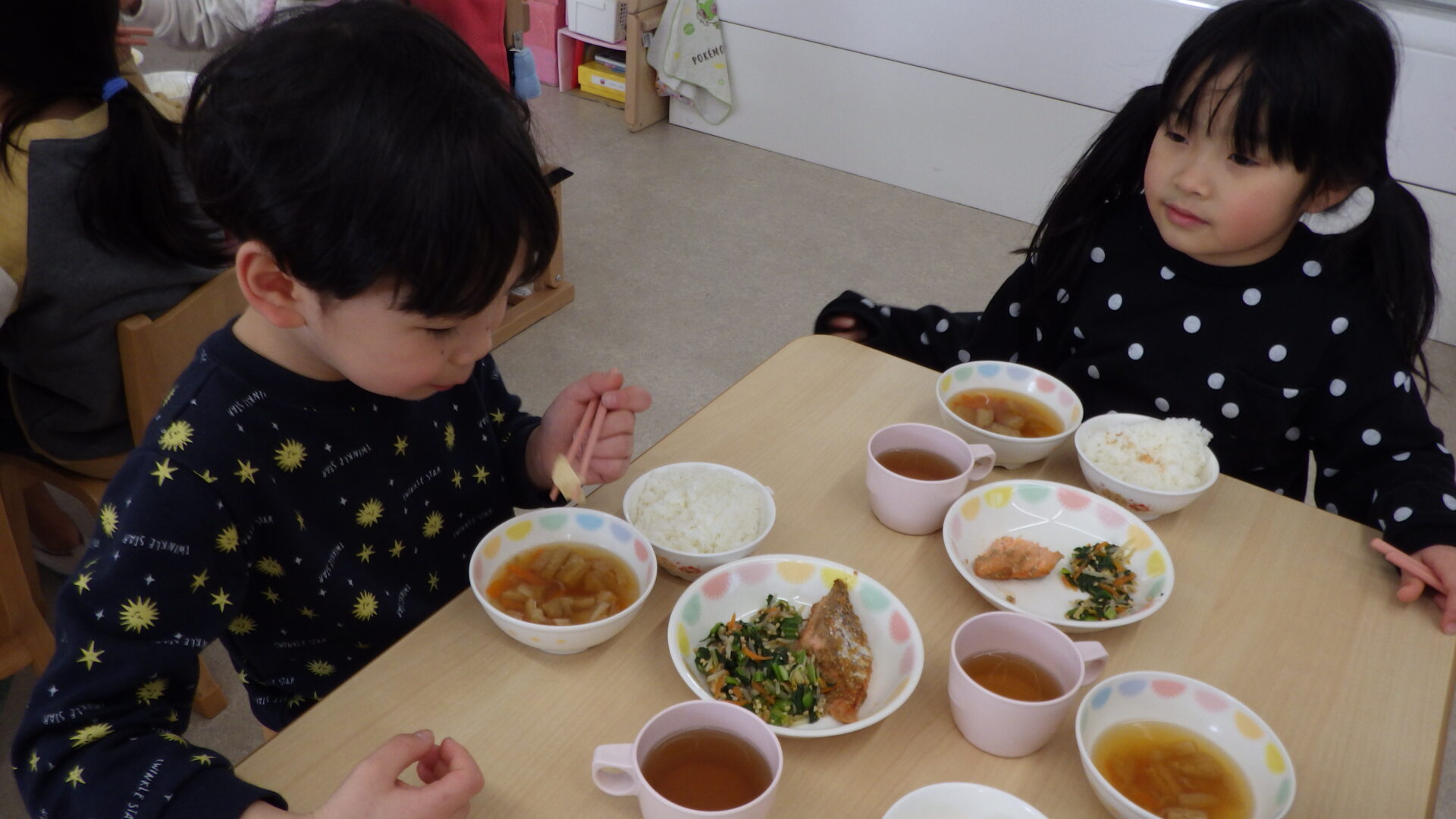 給食では、お友だちとの会話を楽しみながらおいしいご飯を頂きました🍚