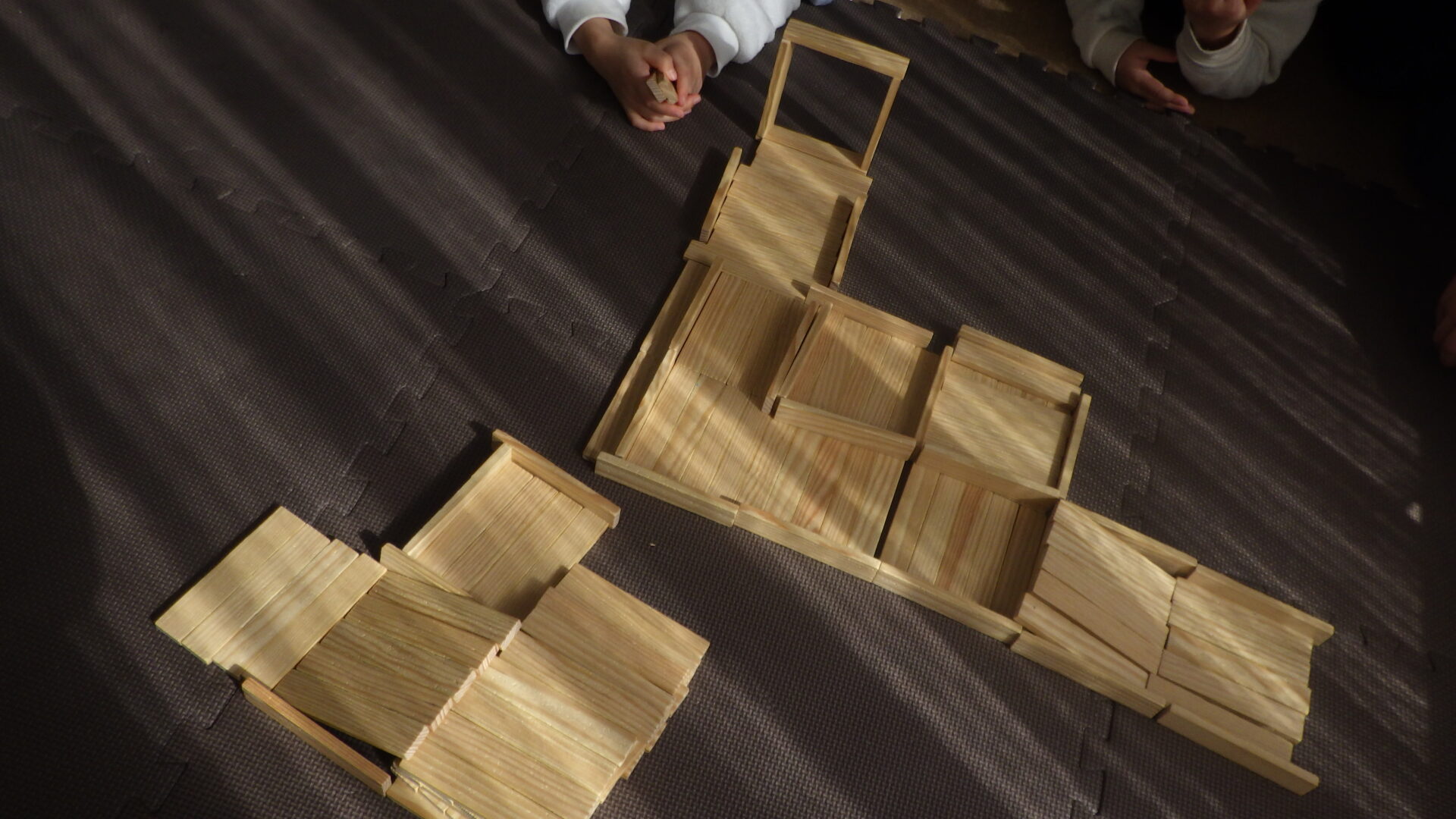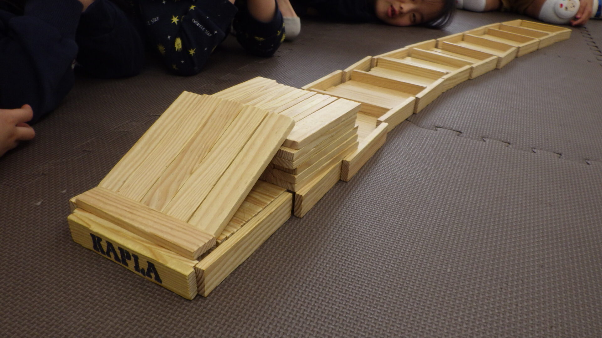 図工では、2グループに分かれ、グループでカプラ(木製造形積み木)を使って創作をしました。