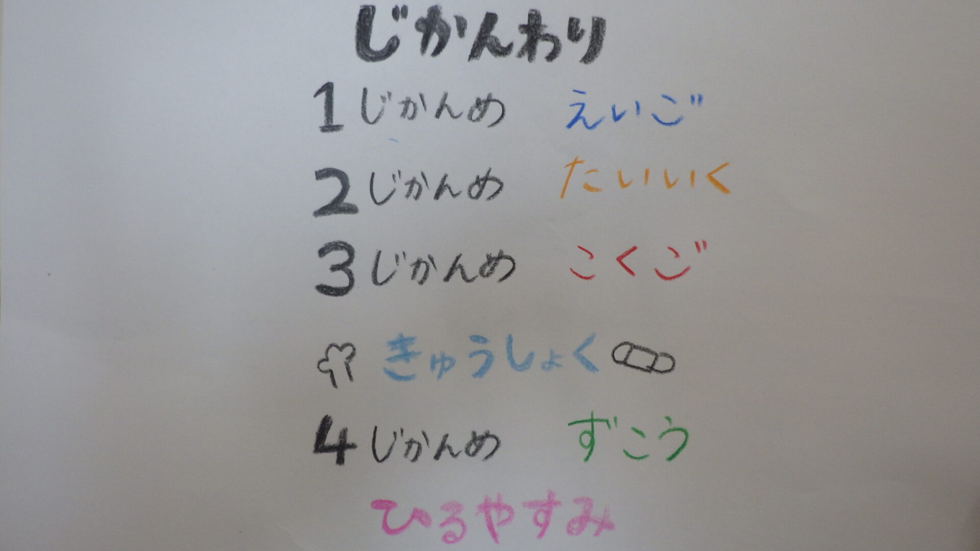 この時間割で進めていくことと、チャイムが鳴ったら席に座るというルールを決め、