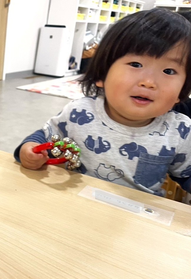 楽器を受け取ると、鳴らしたくて仕方がない様子(´艸`*)
