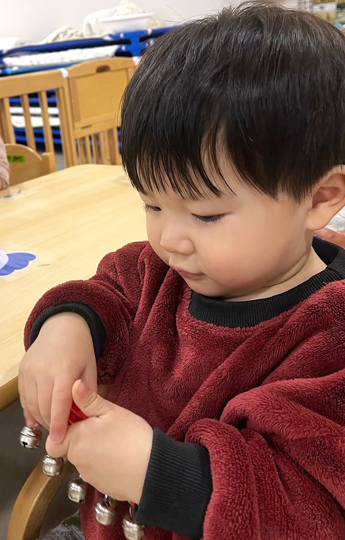 鈴・カスタネット・タンブリンの中から、気になる楽器に触れてみます。