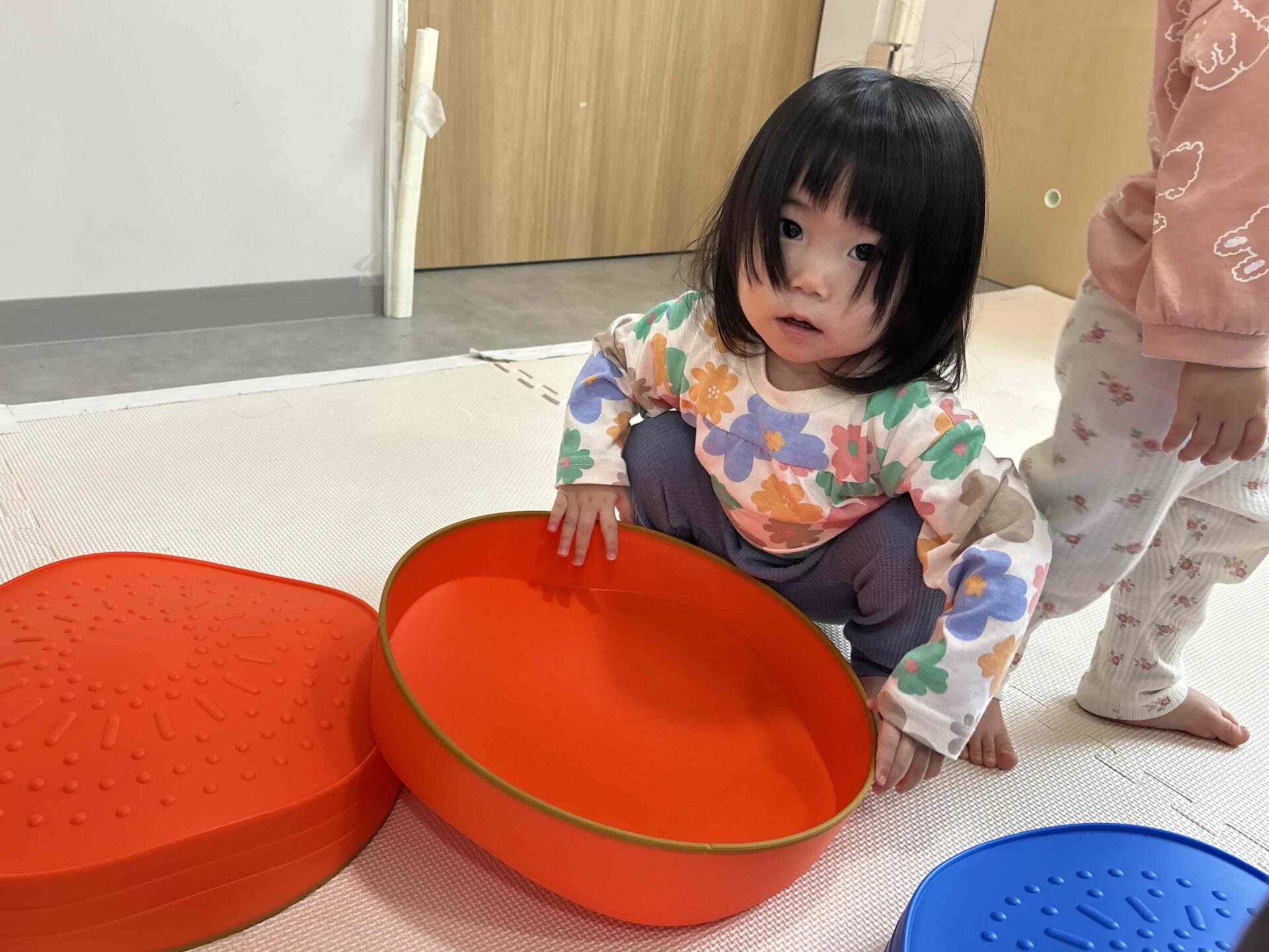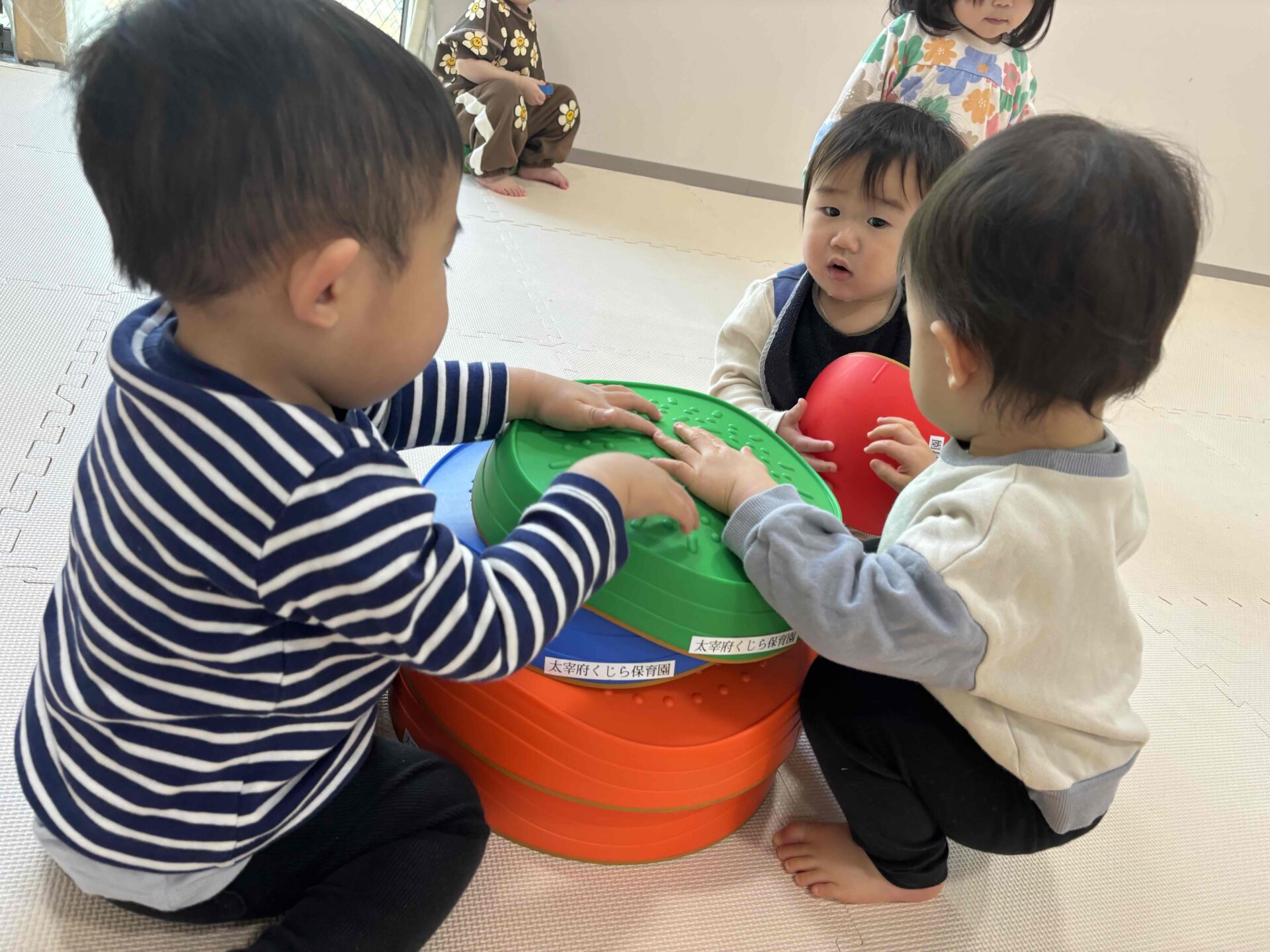 ひっくり返してみたり、積み木のようにお友だちと重ねてみたりと1つのおもちゃでも