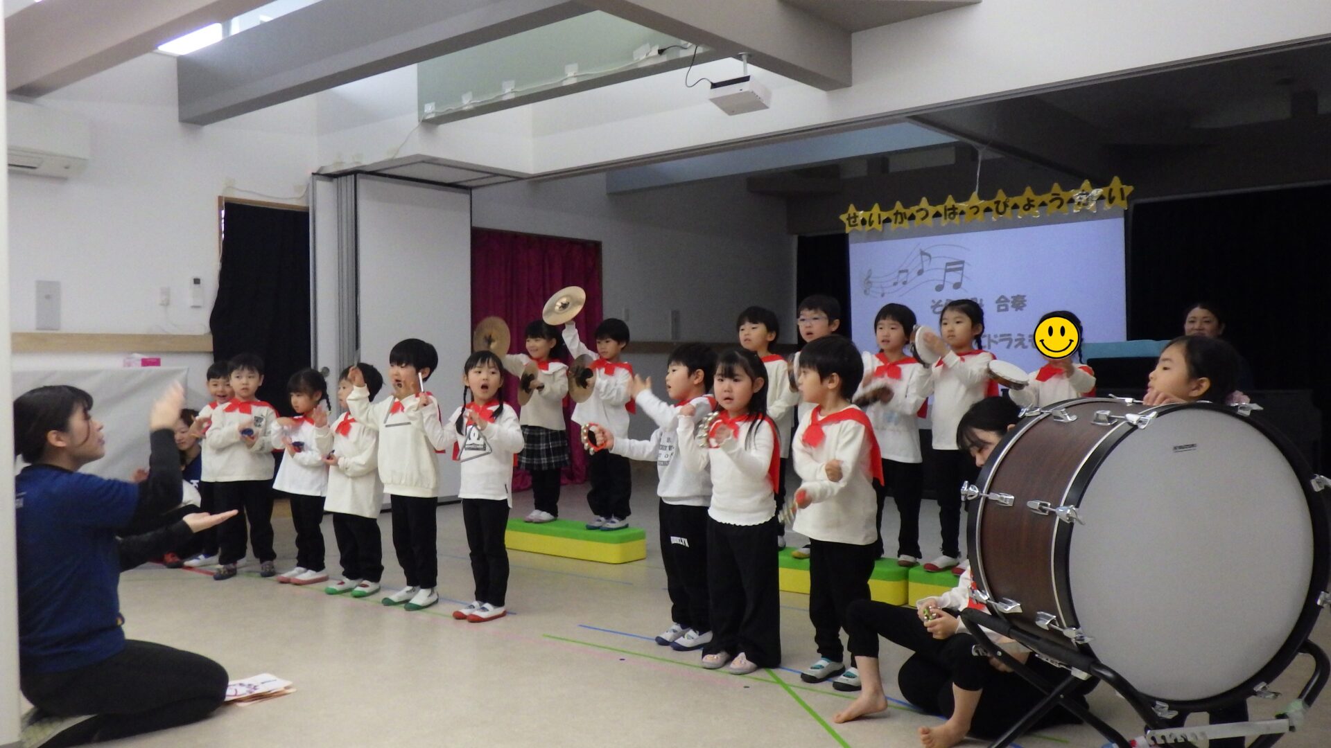 指揮をする保育士を見ながら、みんなで一緒に気持ちを合わせる子どもたちでした🥁✨