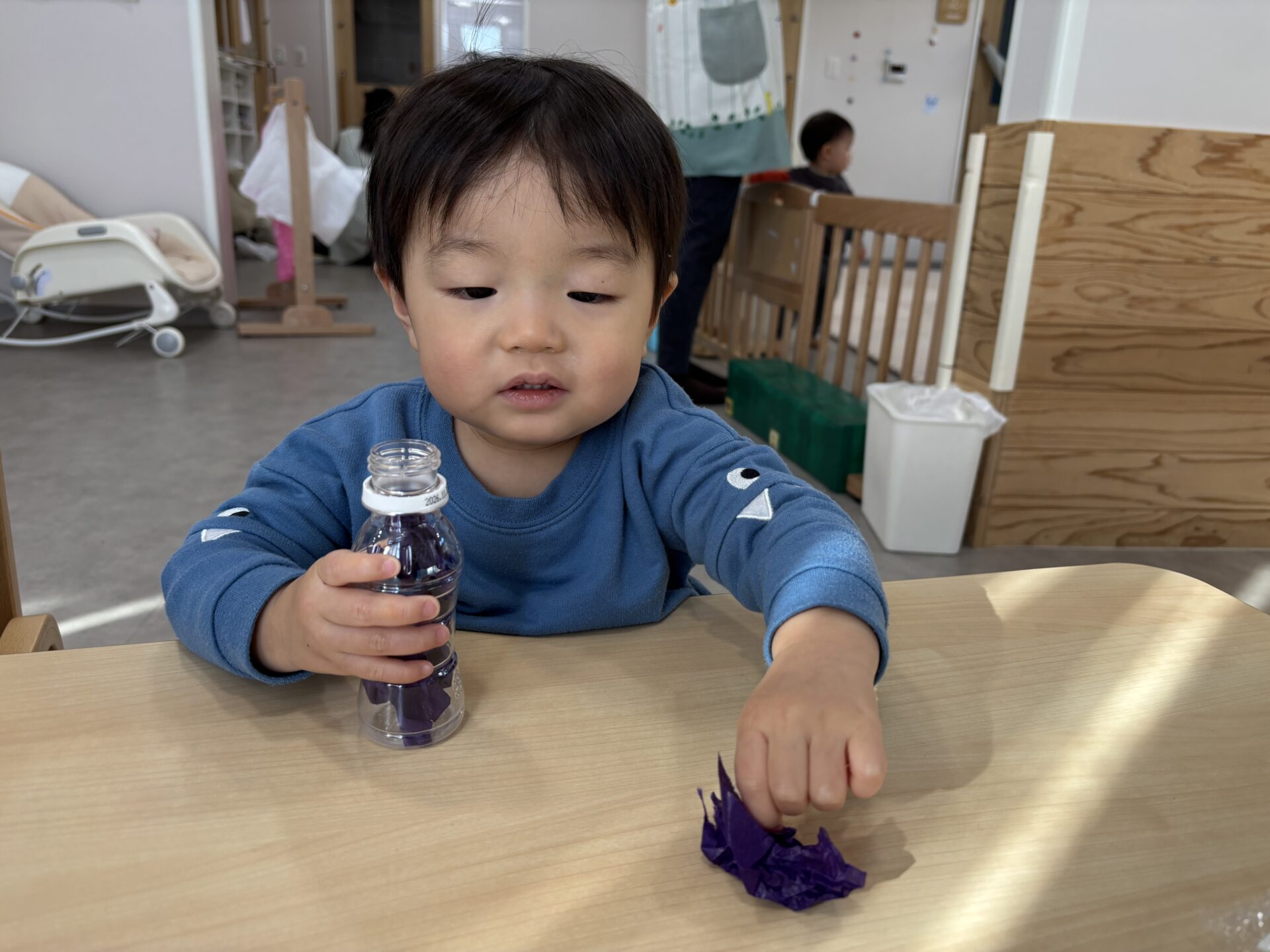 朝からせっせと何かを作っているうみ組(0歳児)さん。