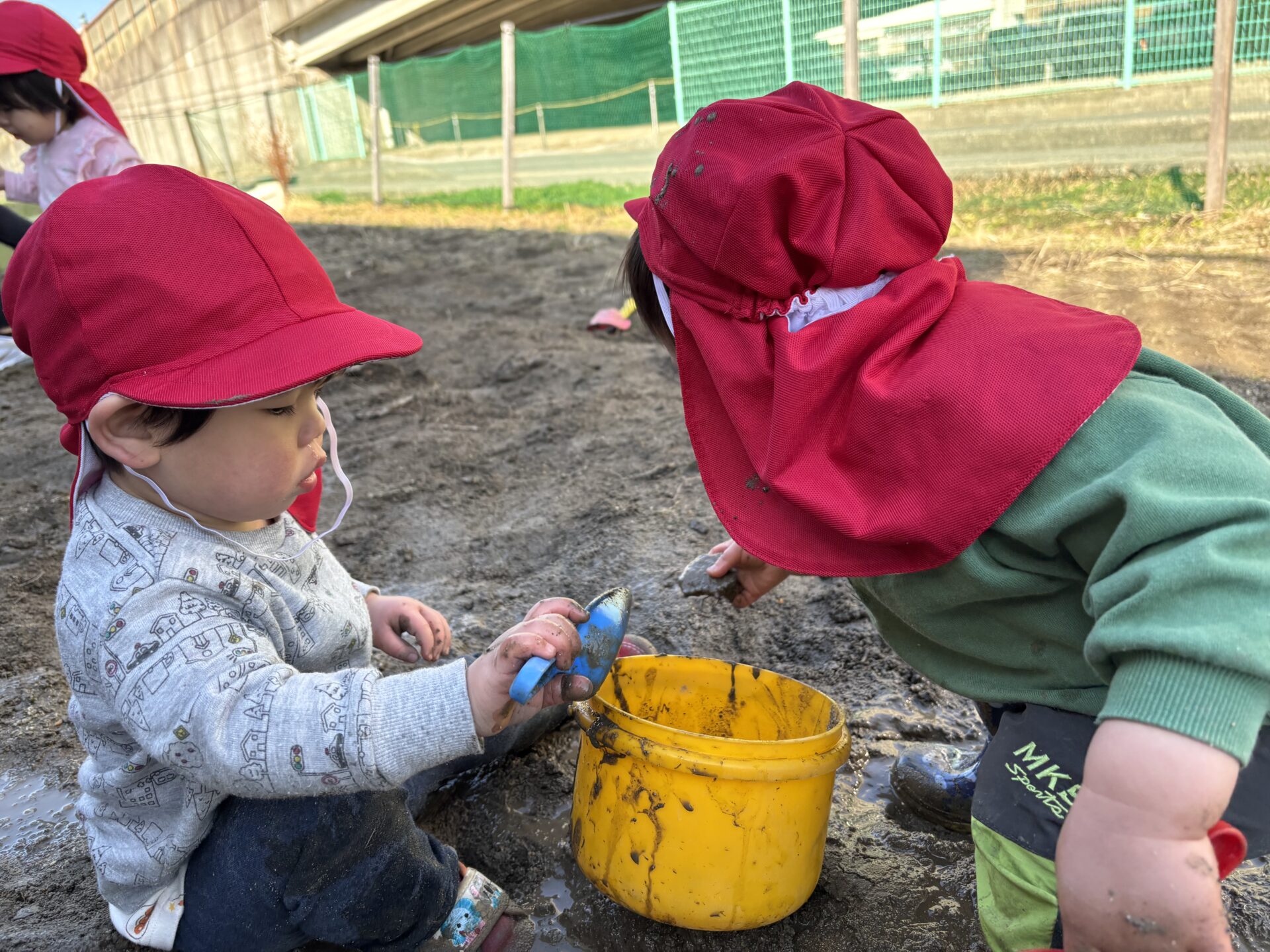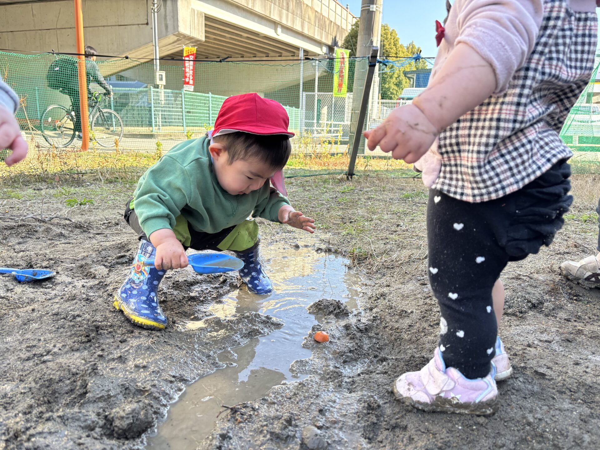 土に慣れてきたところで、水を足して泥を作ってみました。