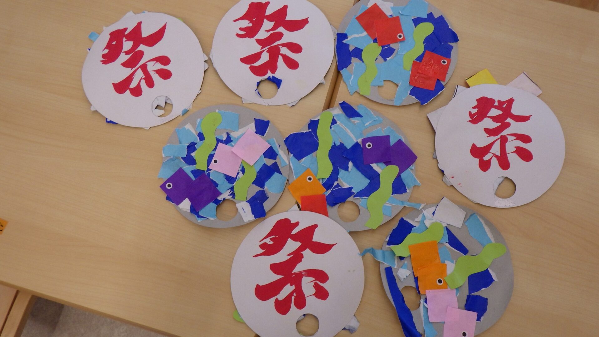 自分で選んだ色の折り紙を貼って、さかなの完成!