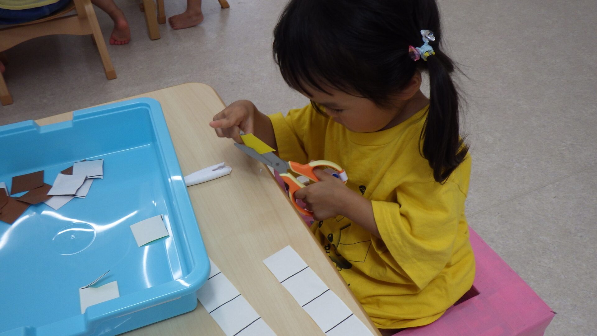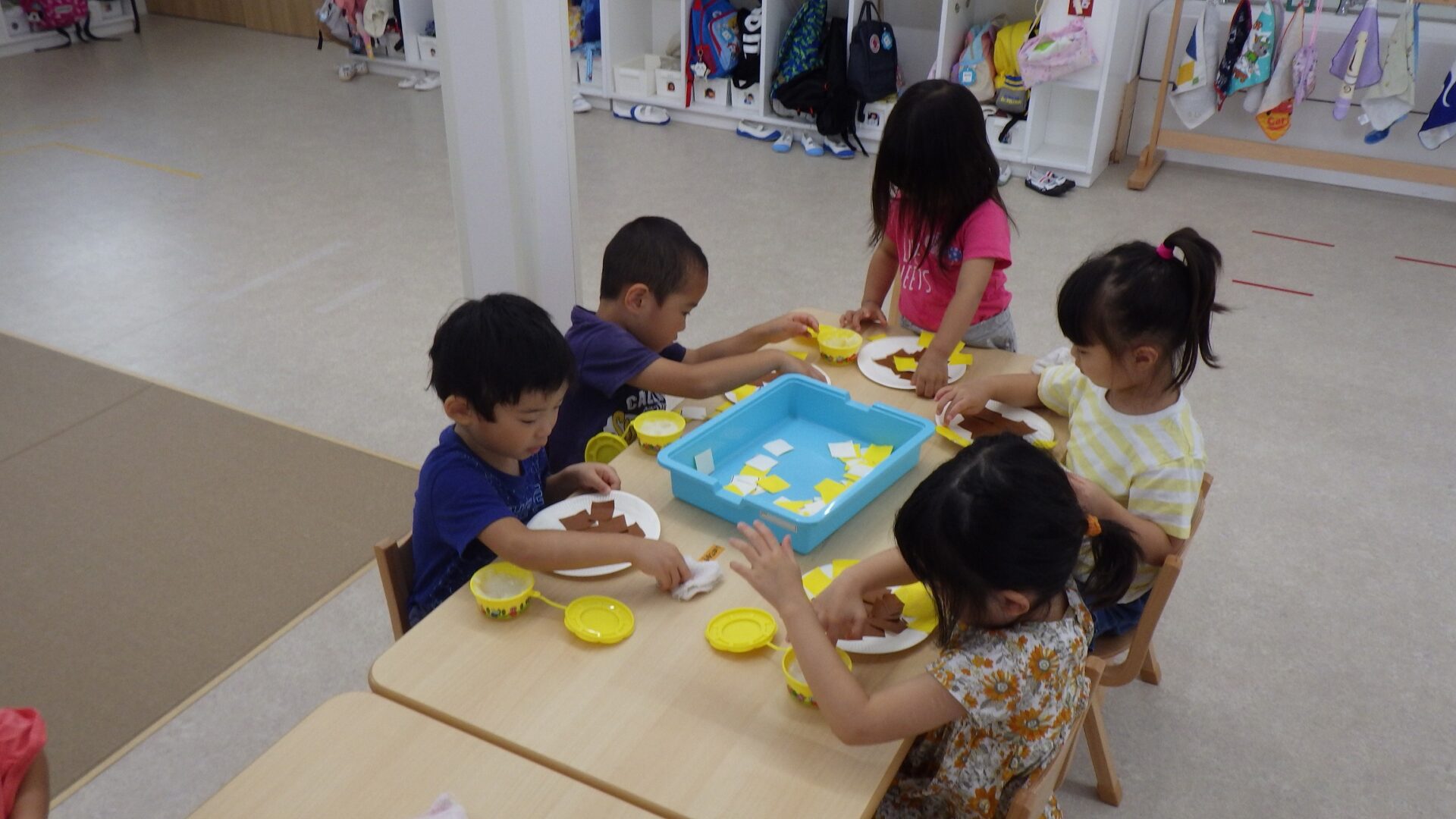 「紙皿に貼って完成!」と保育士がいうと、子ども達から意見が…
