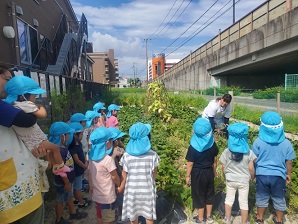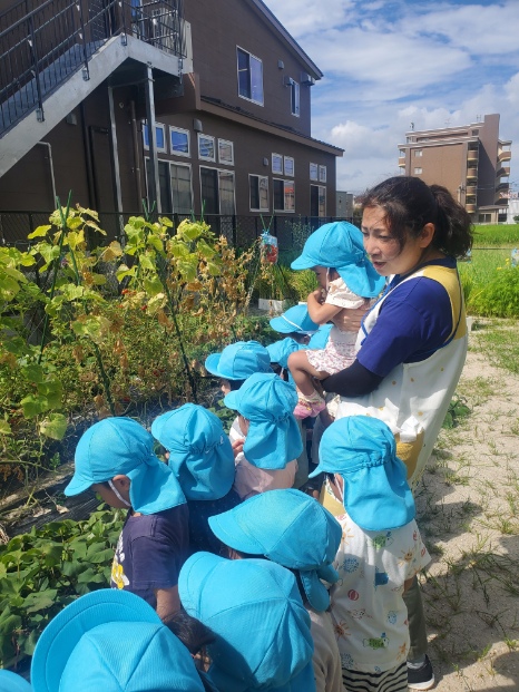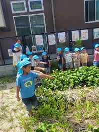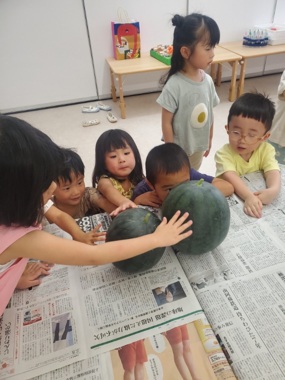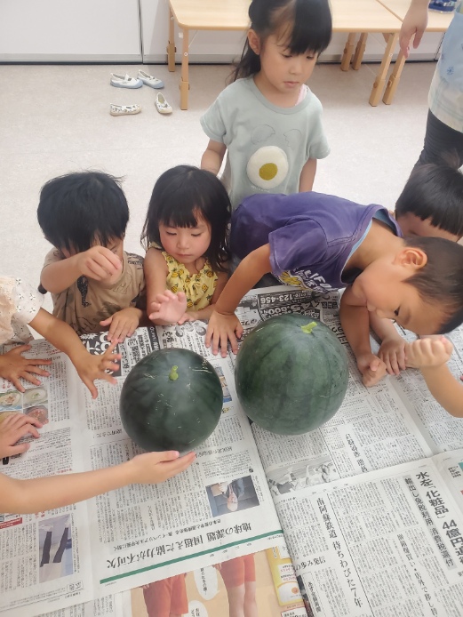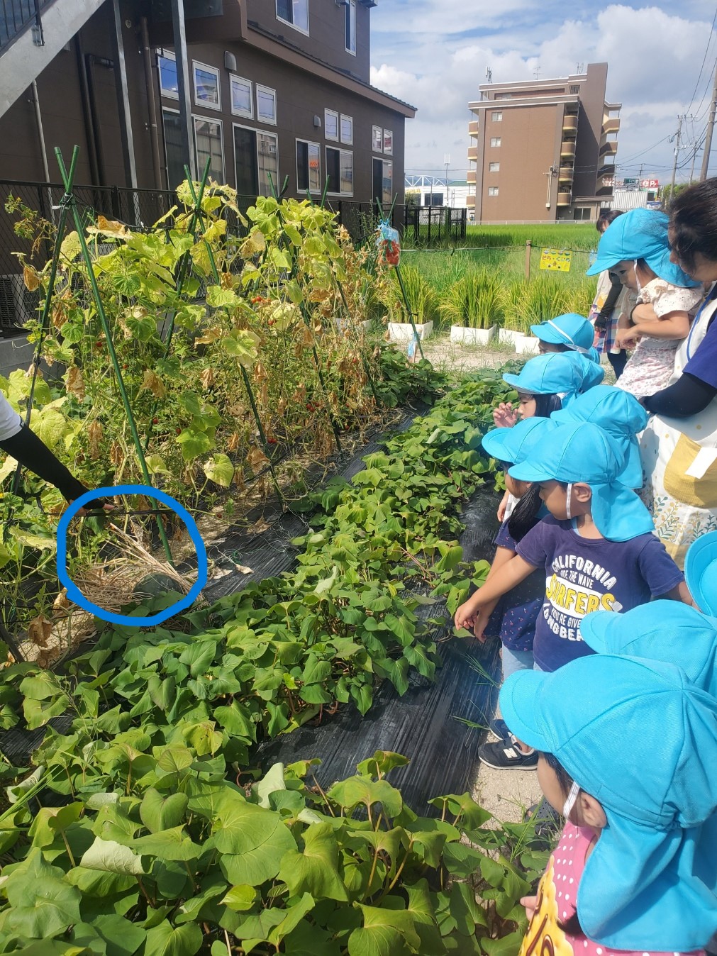 8月16日、そら・くじらがスイカを収穫した日、にじ組は、逸る気持ちを抑えつつ、次回に期待して待ちに待った今日、スイカの収穫を迎えました。 ほんとにスイカ残ってるのかな~?