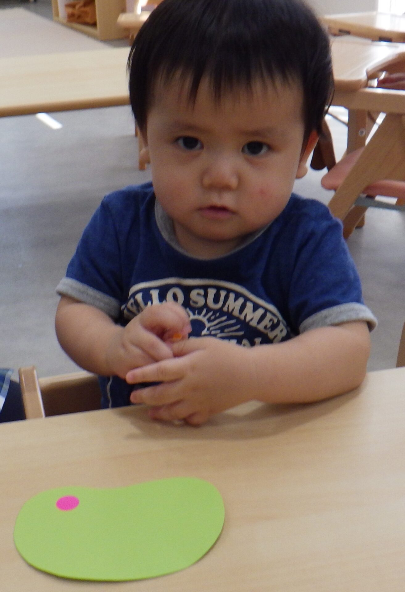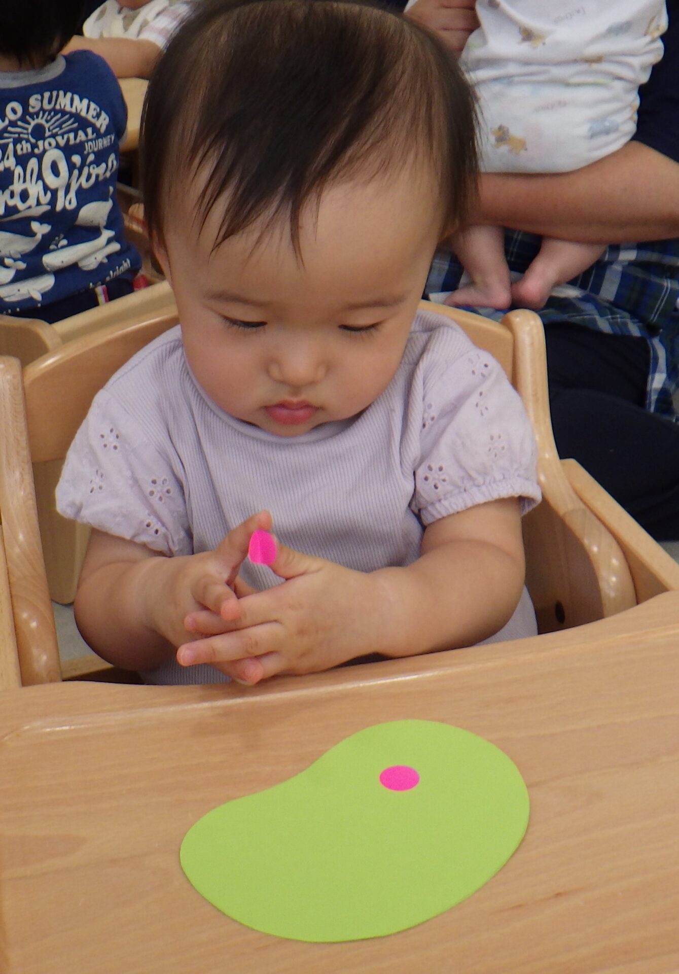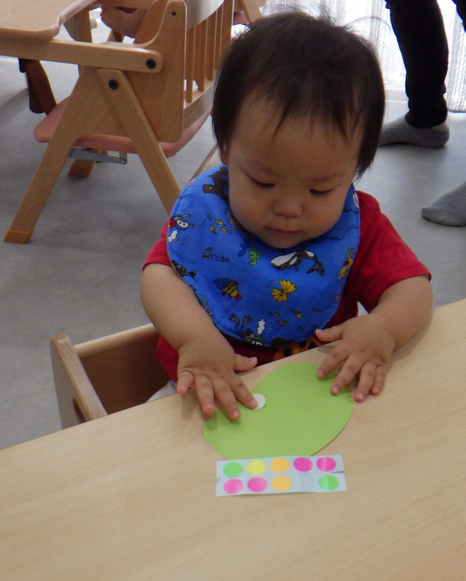 でもシールを見ながら、一生懸命指先を動かします。