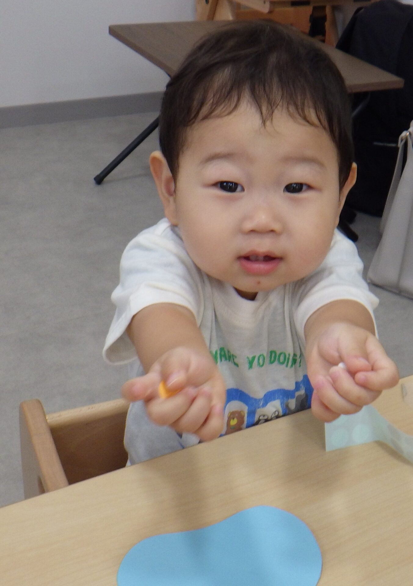 最近のうみ組さんは、真似っこ上手で保育士やお友だちの真似をして楽しんでいます。