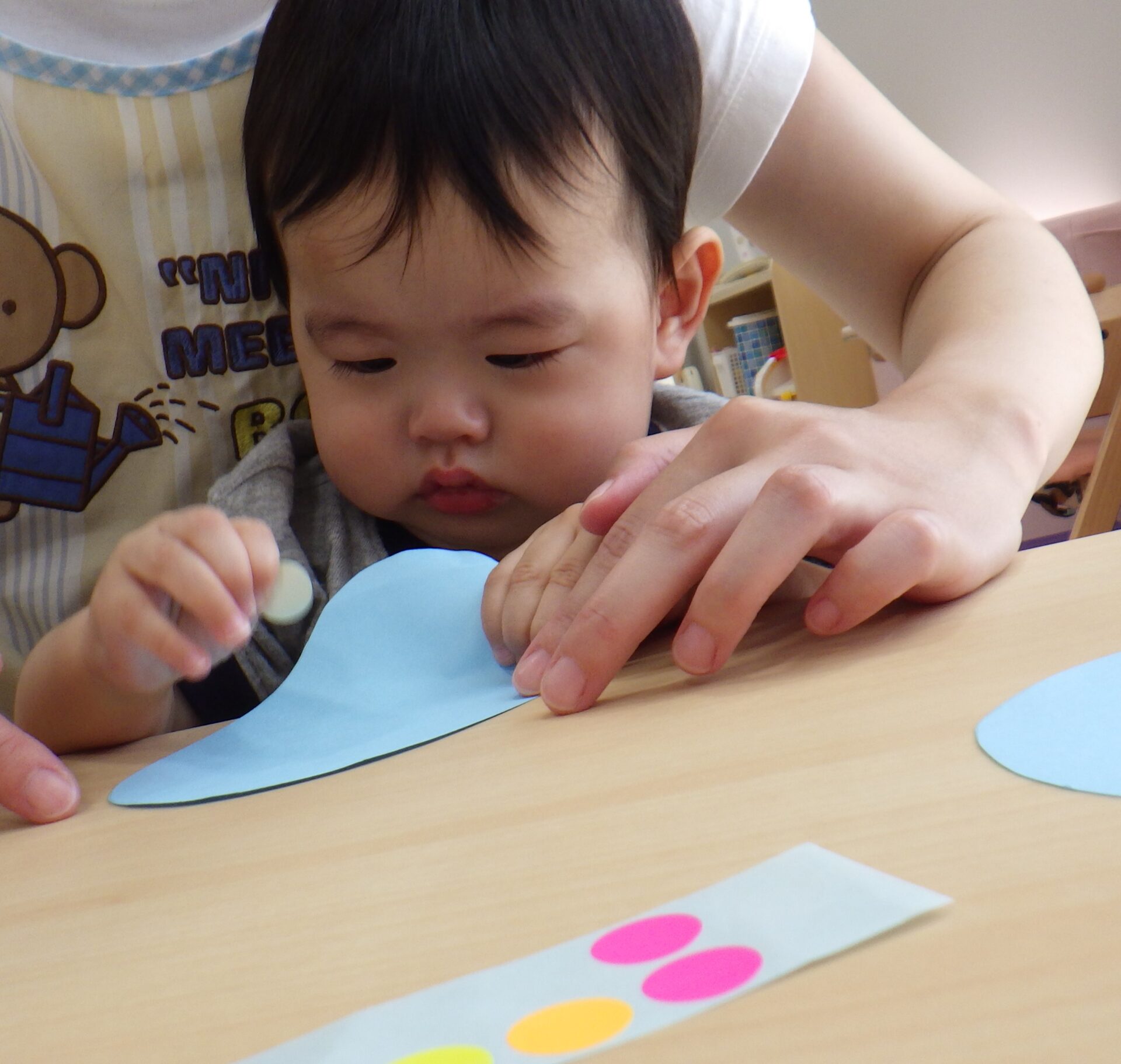 「こんな風に、貼るんだよ」と声をかけ見本を見せると……