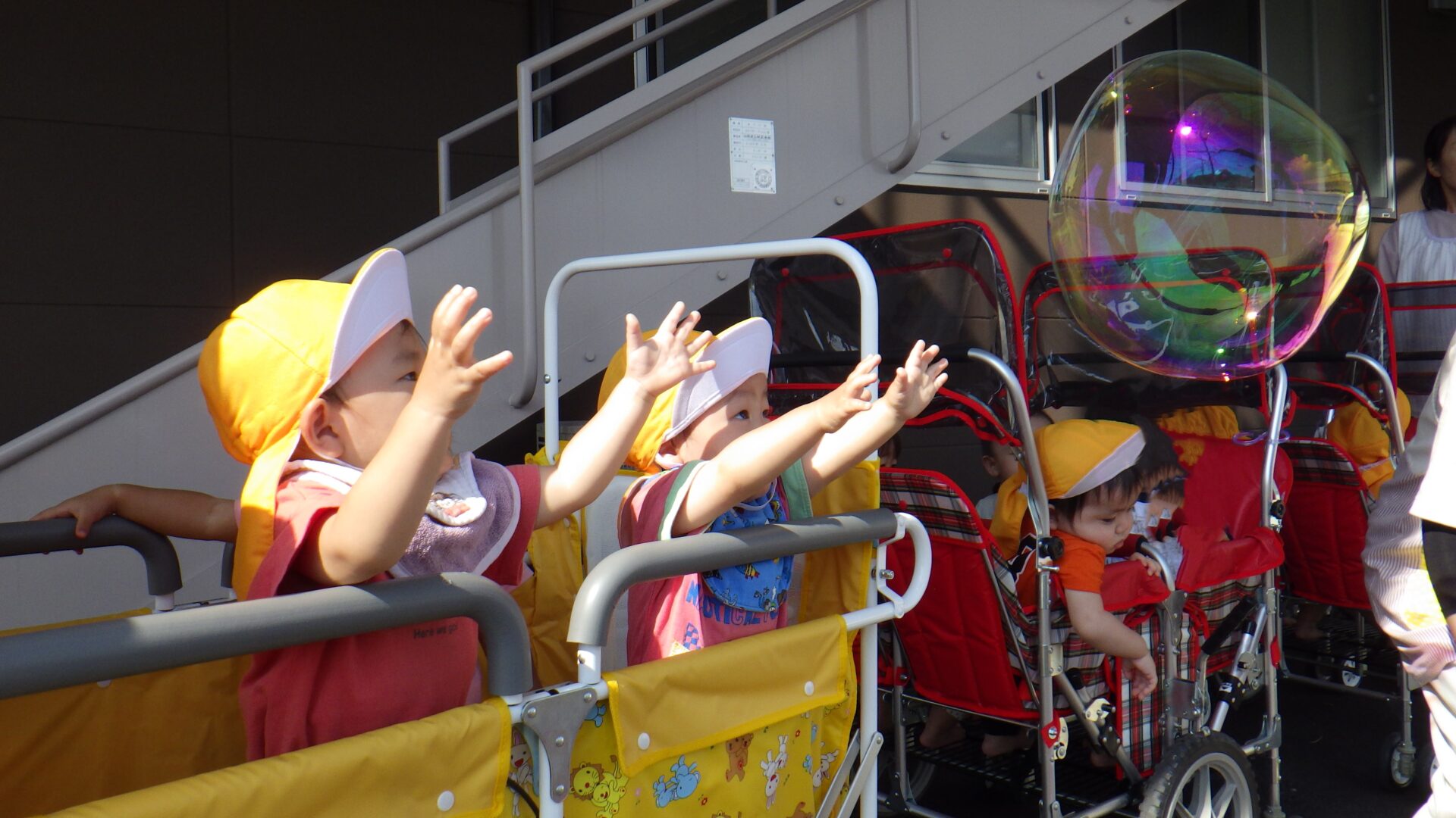 シャボン玉を触ってみたいけれど、なかなか触る事はできません(笑)