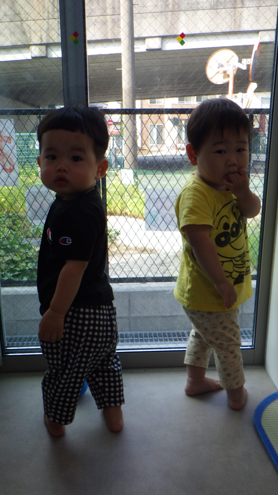 お天気が続き、窓に近づいてお外の様子を気にしている、うみ組さん。