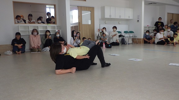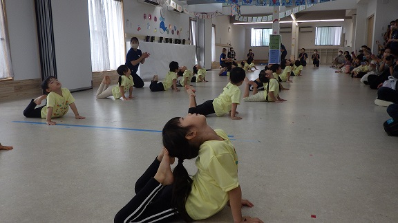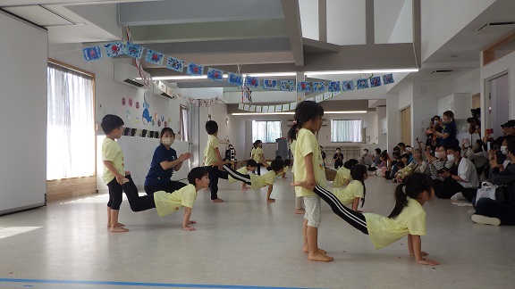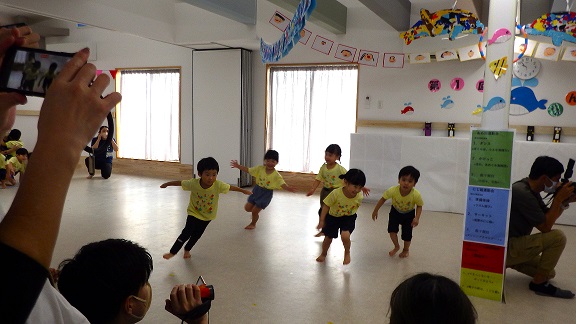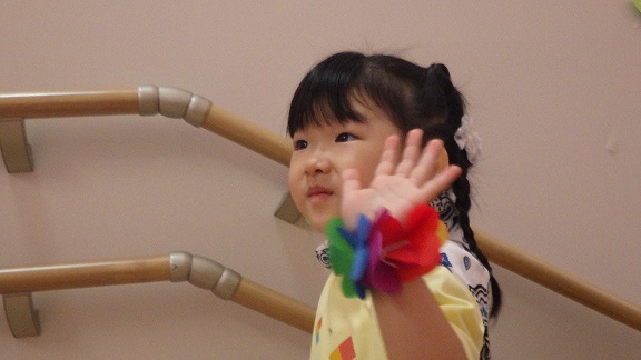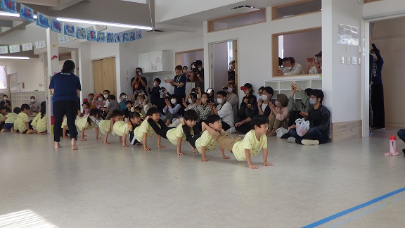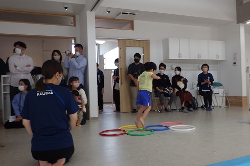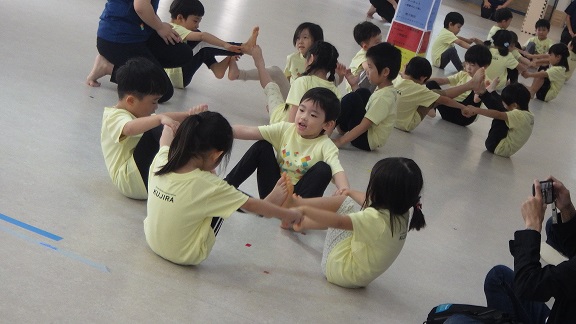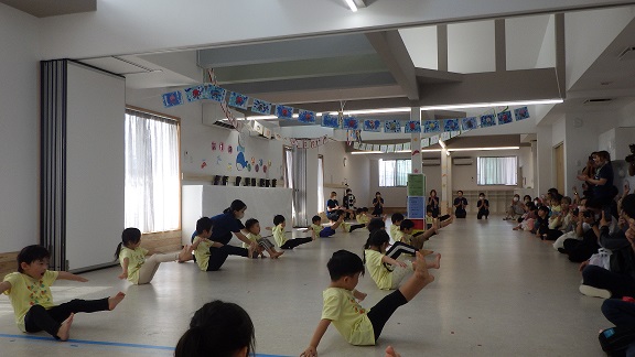 毎日頑張っているリズム遊びを、おうちの人の前で披露しました。