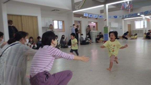 パパ・ママに、おんぶや抱っこをしてもらえると聞いて、練習の時から楽しみにしていたそら・くじら組さん。