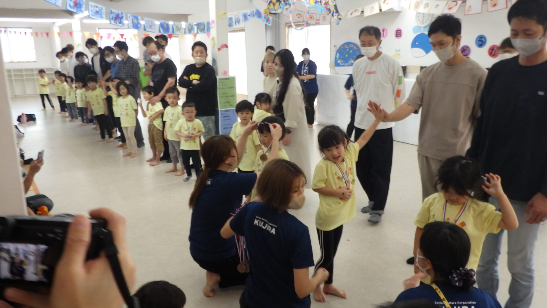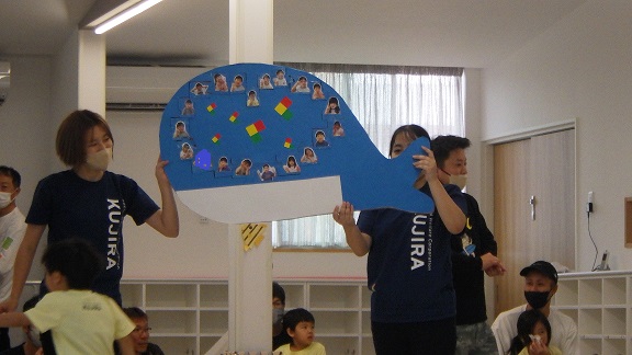 閉会式では、これまでの頑張りを、先生たちやおうちの人に褒めてもらい、ニコニコ笑顔のそら・くじら組さんでした。