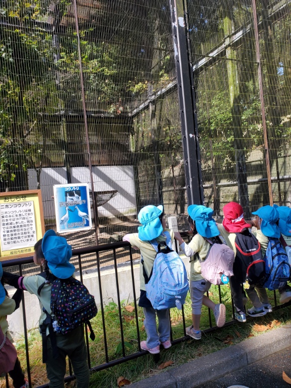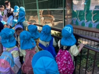 にじ組(3歳)わくわくコースと、そら(4歳)・くじら(5歳)チャレンジコースに分かれて、動物園内を散策です。