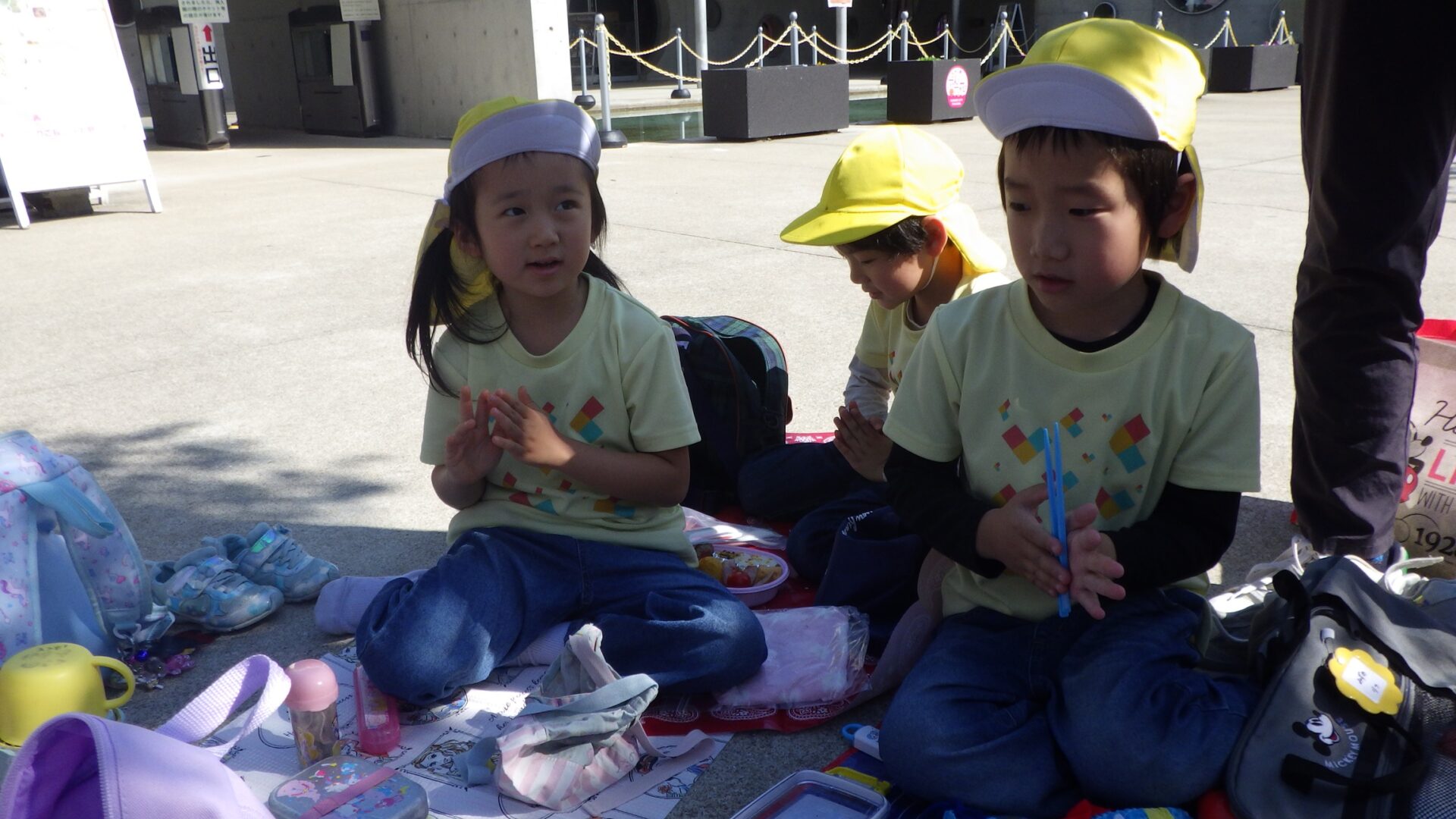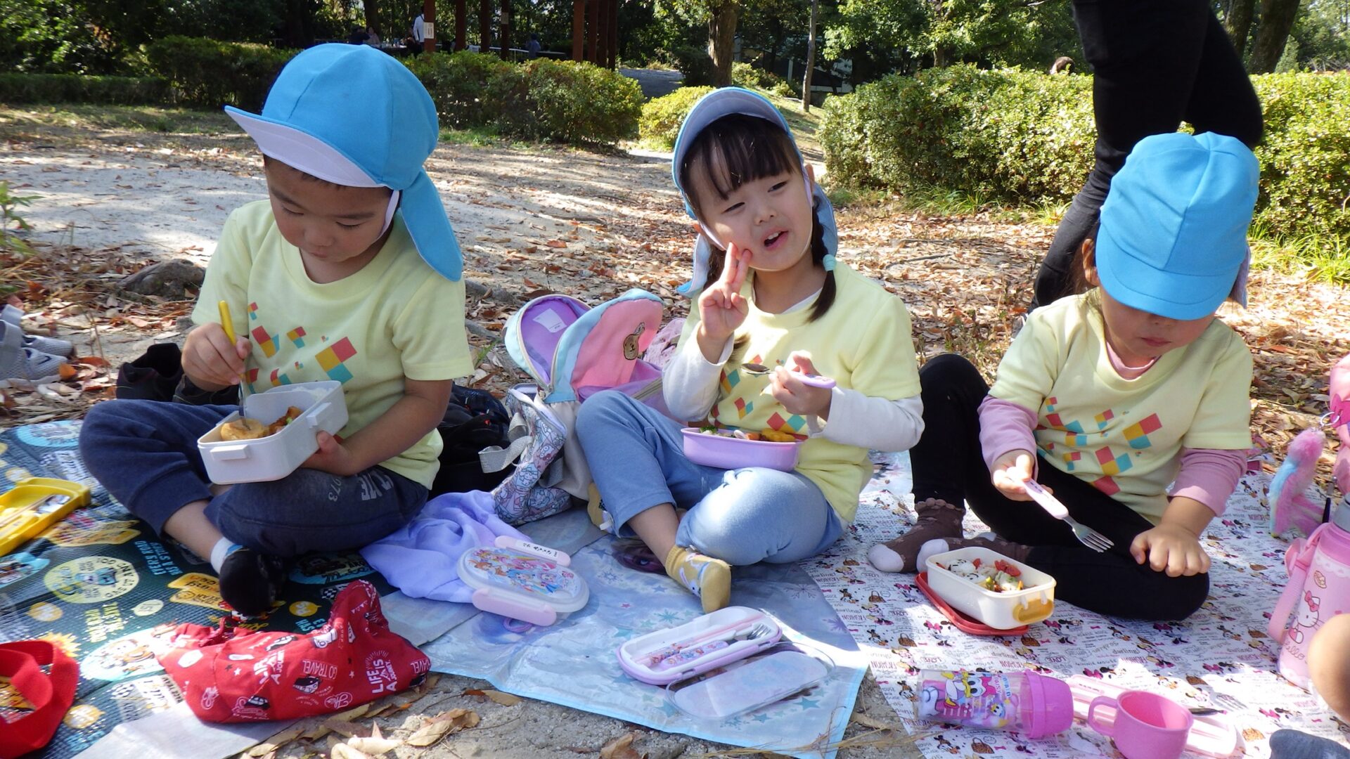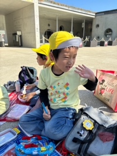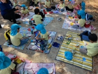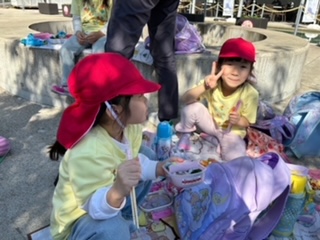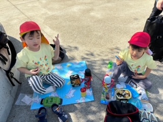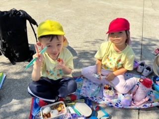 そら・くじら組もお弁当タイム、嬉しい笑顔がこぼれます。お弁当食べたら、次はどこ行くのかな~。