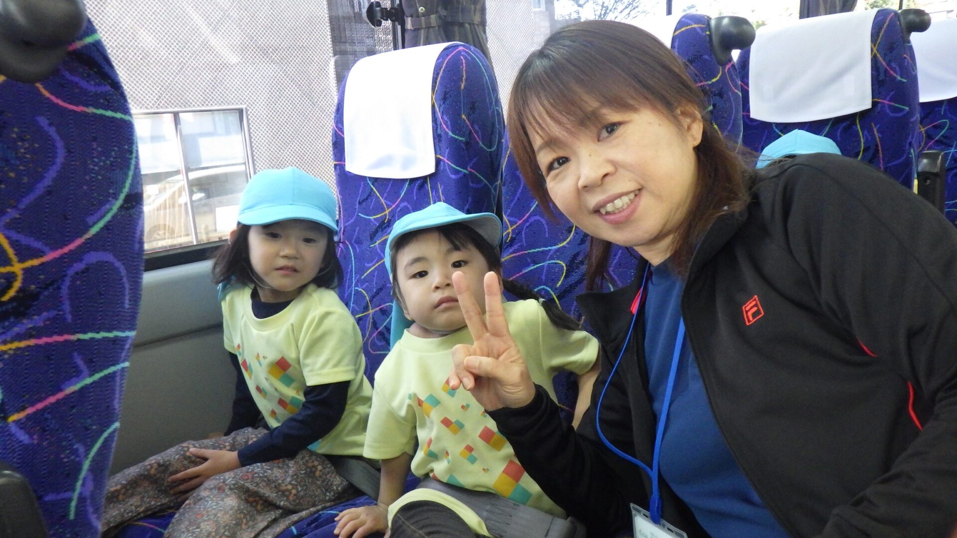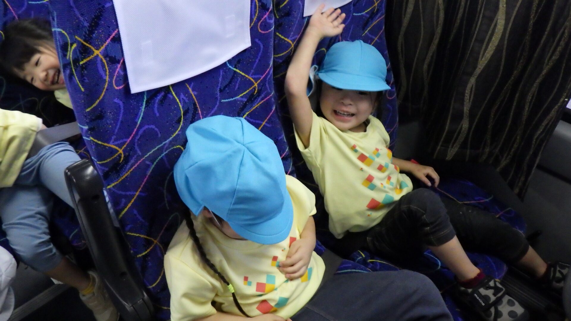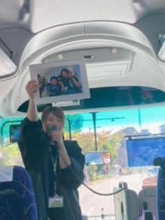 にじ組は、大騒ぎ、楽しさが帰りのバスの中でも続いています。