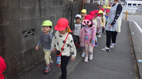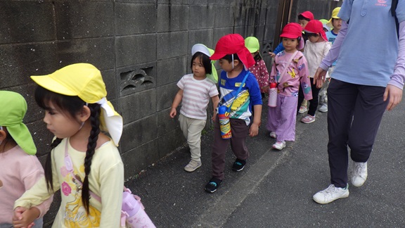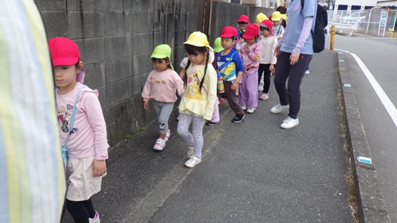 お兄さん・お姉さんのおかげで、しっかり歩くことができていましたよ。車道側を歩き、あめ組さんを安全に連れて行ってくれたそら・くじら組さん、ありがとう!